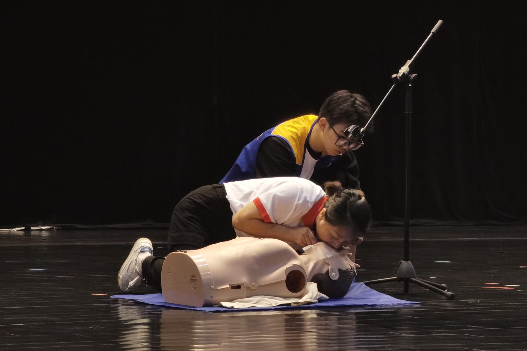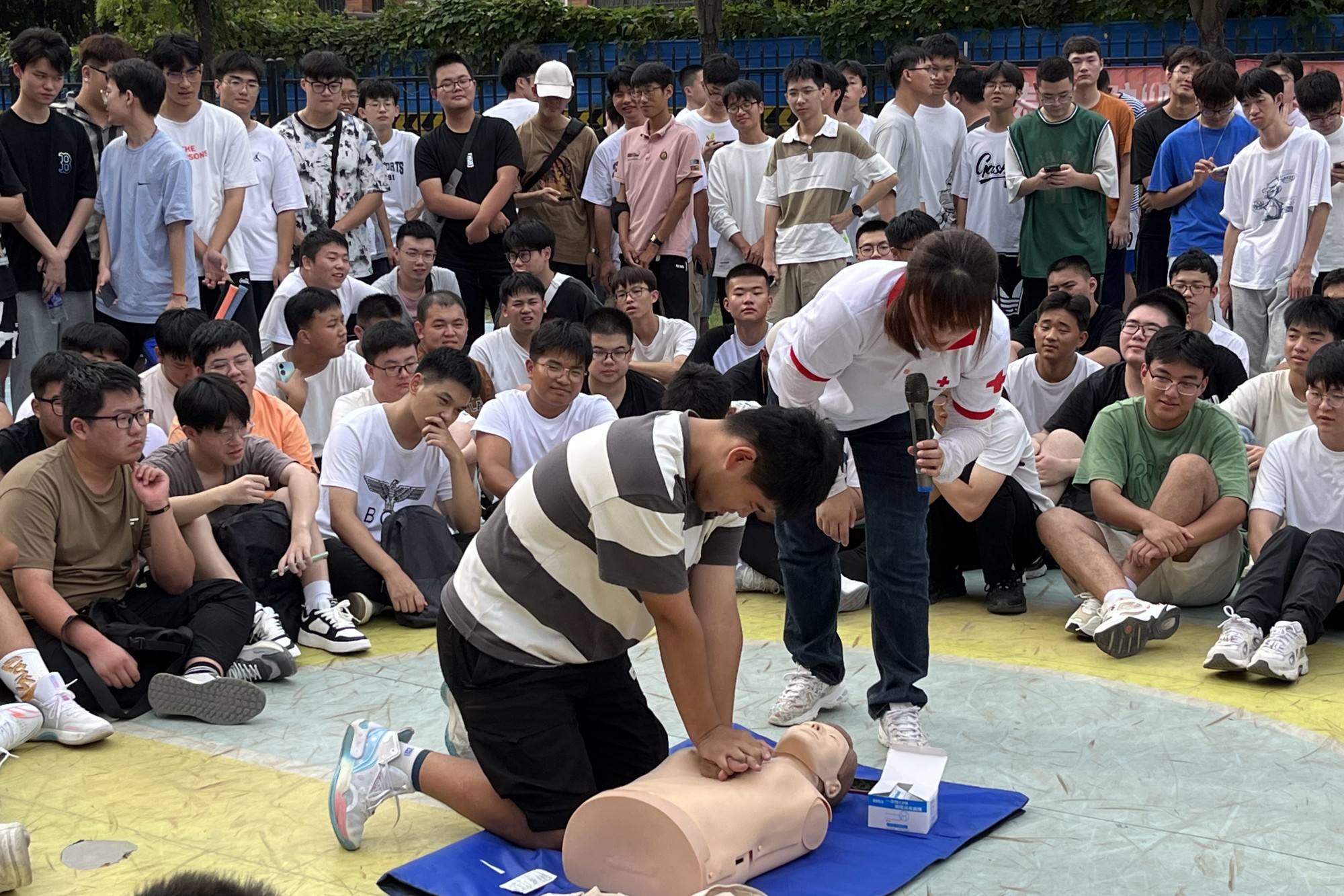 为提高大学生的应急救护能力,增强学生的安全意识,校团委于9月10日举办了“救在身边·校园守护”2023级新生急救培训专场活动。活动在bat365济川校区大学生活动中心和同济校区篮球场同时举行,全体本科四年制新生及新生辅导员参加了活动。