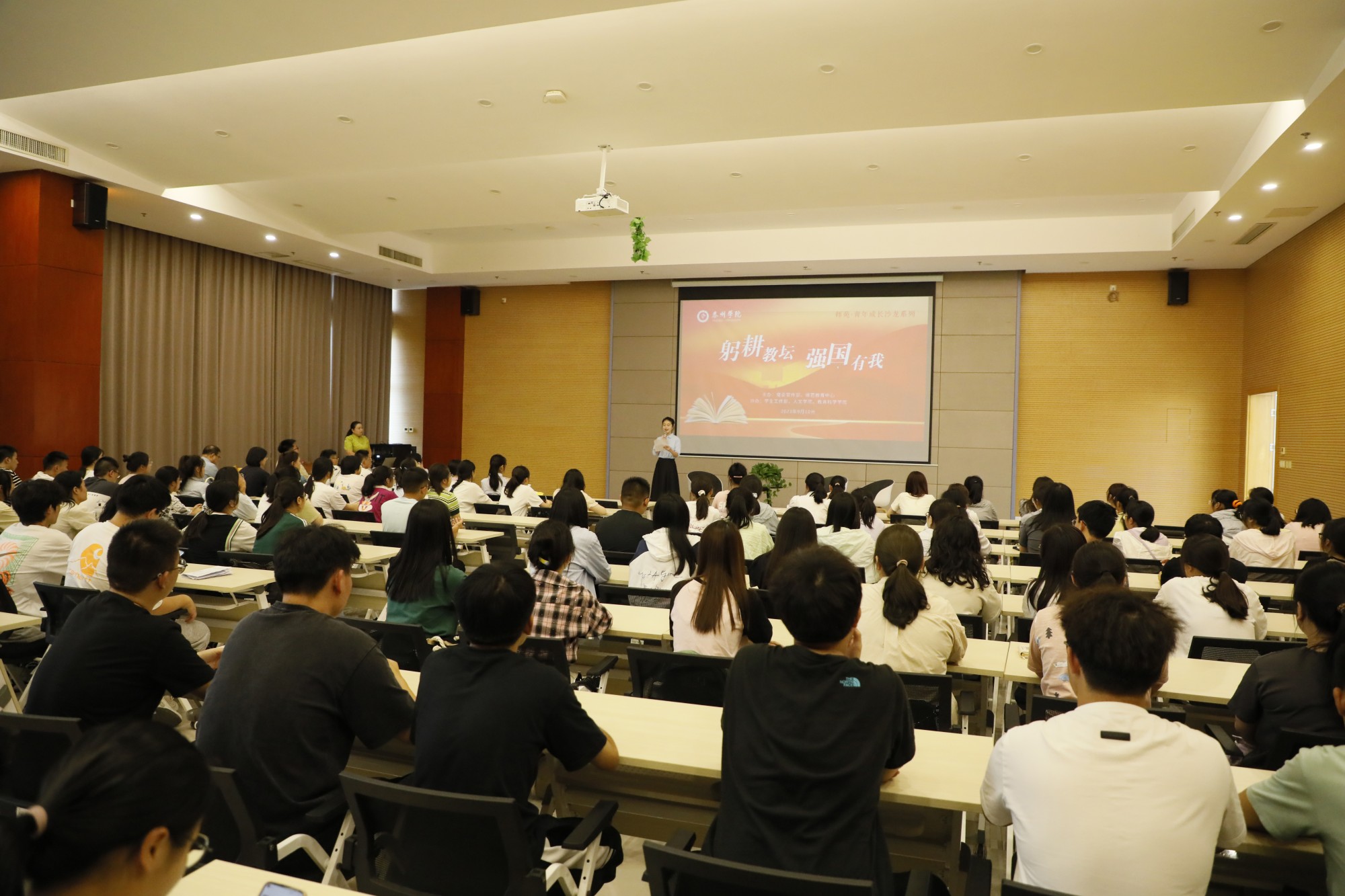 9月10日下午,由党委宣传部、师范教育中心主办,学生工作部、人文学院、教育科学学院协办的“师苑·青年成长沙龙”教师节专场活动在图书馆E1703举行。活动主题为“躬耕教坛 强国有我”,首批93名定向师范生和教师代表参加活动。通过杰出校友代表、泰州市实验小学教师丛龙梅分享故事、观看视频《教师24小时》、师生青春对话等环节,增强了同学们对教师职业的认知及认同。“‘唯有热爱所以漫长’,我向往成为一名小学语文老师,也十分喜爱和孩子们相处,我相信,这会是一场爱的双向奔赴,我会努力做到‘一专多能’,给予孩子们足够的爱,相信也一定能收获孩子们对我的爱。”2023级小学教育(语文定向)专业学生周烨佳表示。