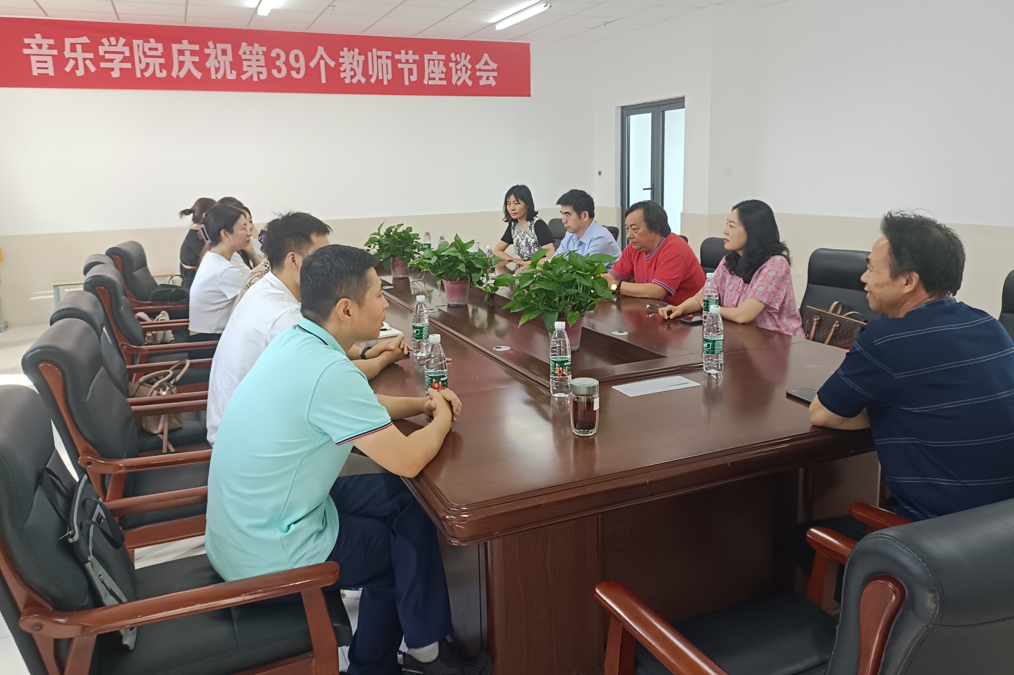 9月10日上午,音乐学院举办庆祝第39个教师节座谈会,全体行政人员、高层次人才、获奖教师、离退休教师和新进教师参加。为激励老师们积极投身教育强国建设实践,学院党总支书记刘江元向教师代表马建颁发奖品,院长张承龙向退休教师代表翟红锦献上鲜花,感谢他们一直以来的默默耕耘和无私奉献,为学院教育发展作出的积极贡献。教师们畅所欲言,结合学院专业建设、人才培养、社会服务、学生工作等方面建言献策,畅谈美好未来。最后,刘江元要求大家牢记为党育人、为国育才使命,树立“躬耕教坛、强国有我”的志向和抱负,在学校教育事业高质量发展中再立新功。