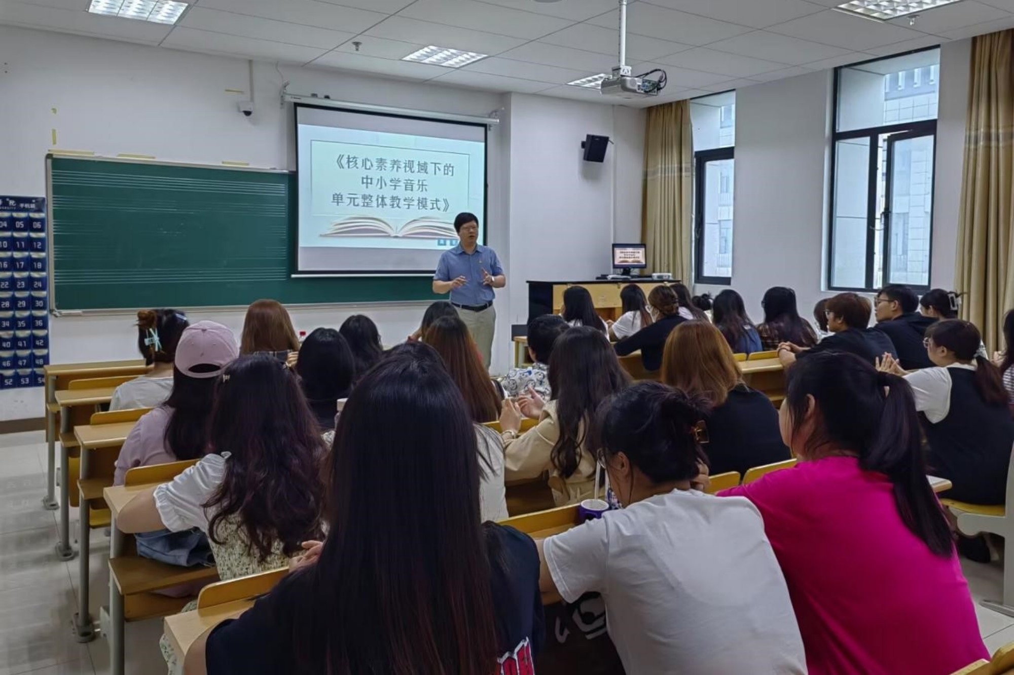 陈亚彬首先结合新版艺术课程标准就实习工作提出了明确要求,从微观、中观、宏观的角度,指导同学们如何进行单元整体教学模式构建及教学评价。陈亚彬还结合师范生编制考试要求,对照新课标,就复习准备、技能考核等方面进行了详细的讲解。