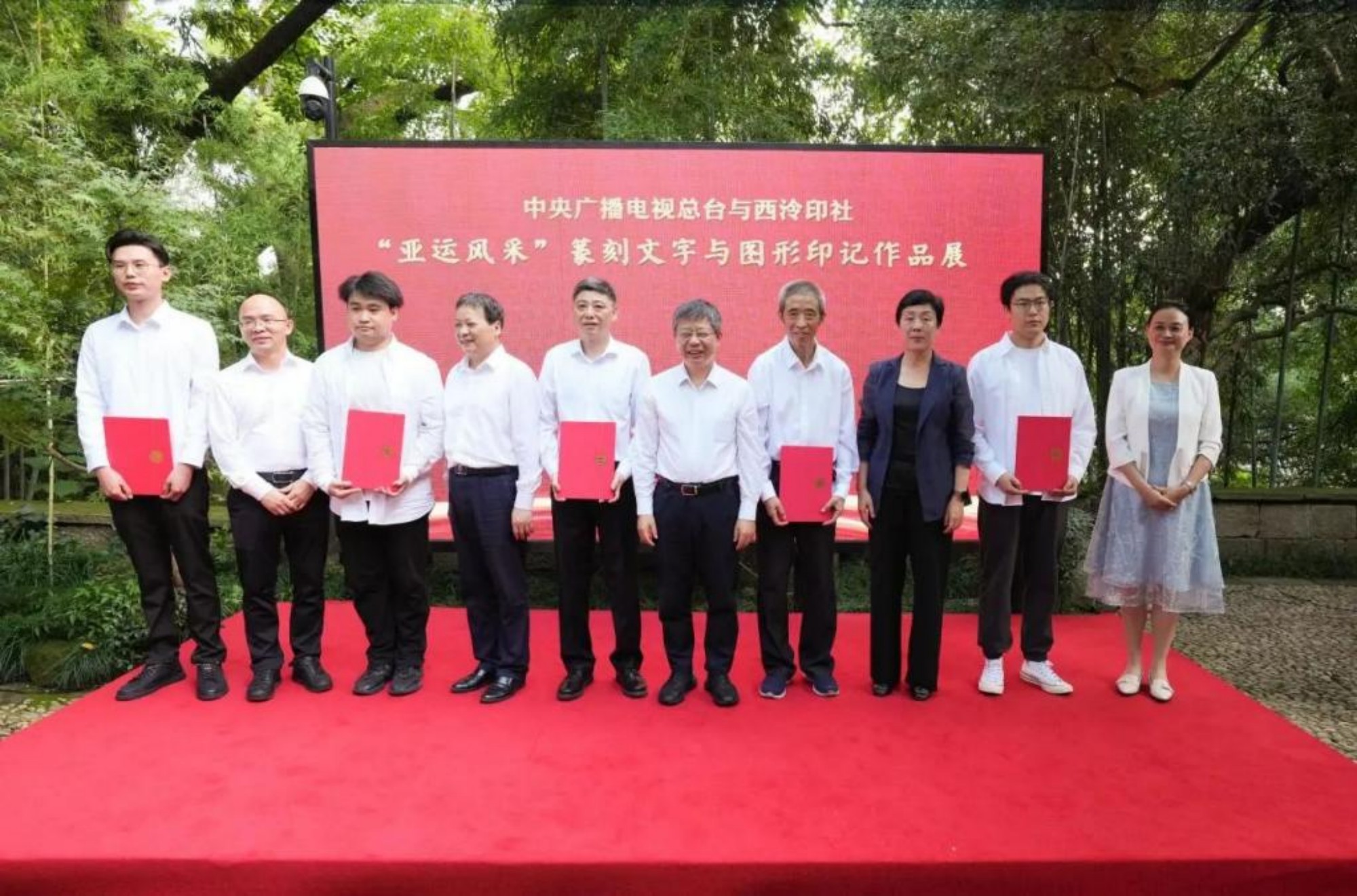 9月25日,中央广播电视总台与西泠印社共同举办的“亚运风采”篆刻文字与图形印记作品展开幕仪式在浙江杭州西泠印社举行。bat365美术学院青年教师刘仪通作品荣获优秀奖,并作为获奖作者代表参加开幕式并接受颁奖。展览开幕式和颁奖典礼在中央电视总台体育频道“体坛快讯”栏目播出。