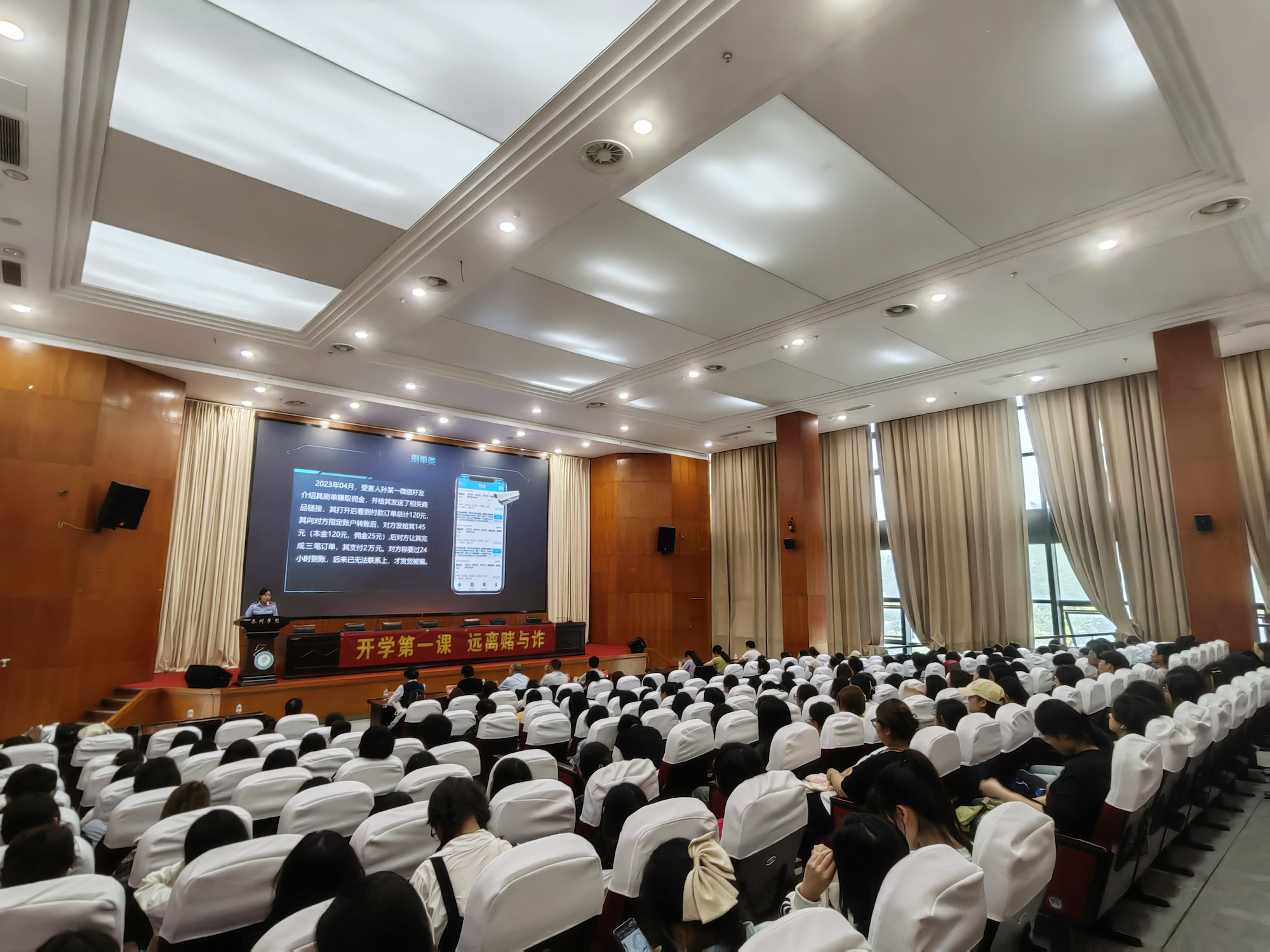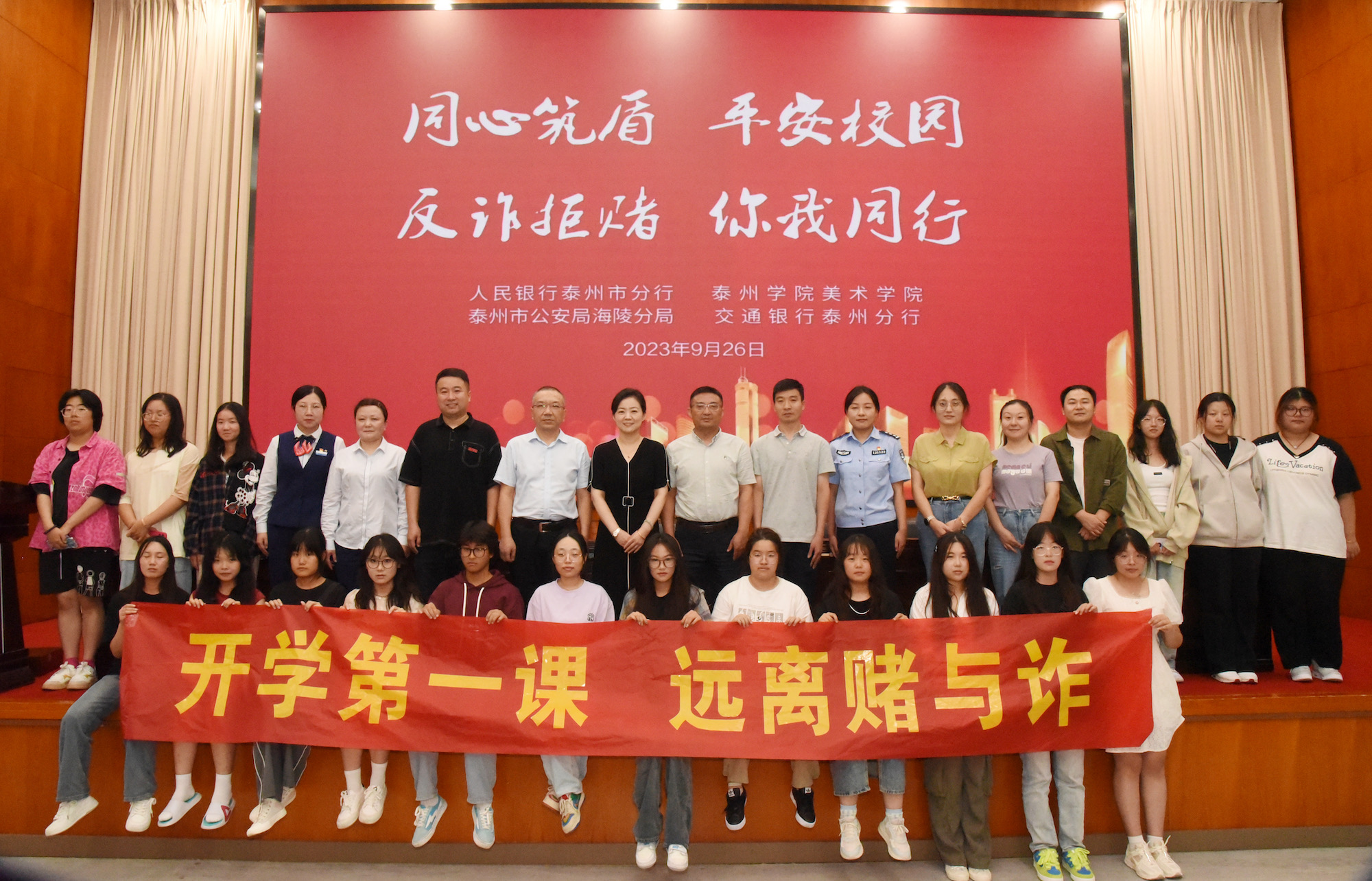 为进一步防范网络诈骗、杜绝不良校园贷,切实保护学生权益,维护校园安全稳定,9月26日下午,美术学院联合人民银行泰州市分行、泰州市海陵区公安分局、校保卫处等部门面向2023级新生联合开展“同心筑盾,平安校园,反诈拒赌,你我同行”专题教育,为新生上好开学第一课。