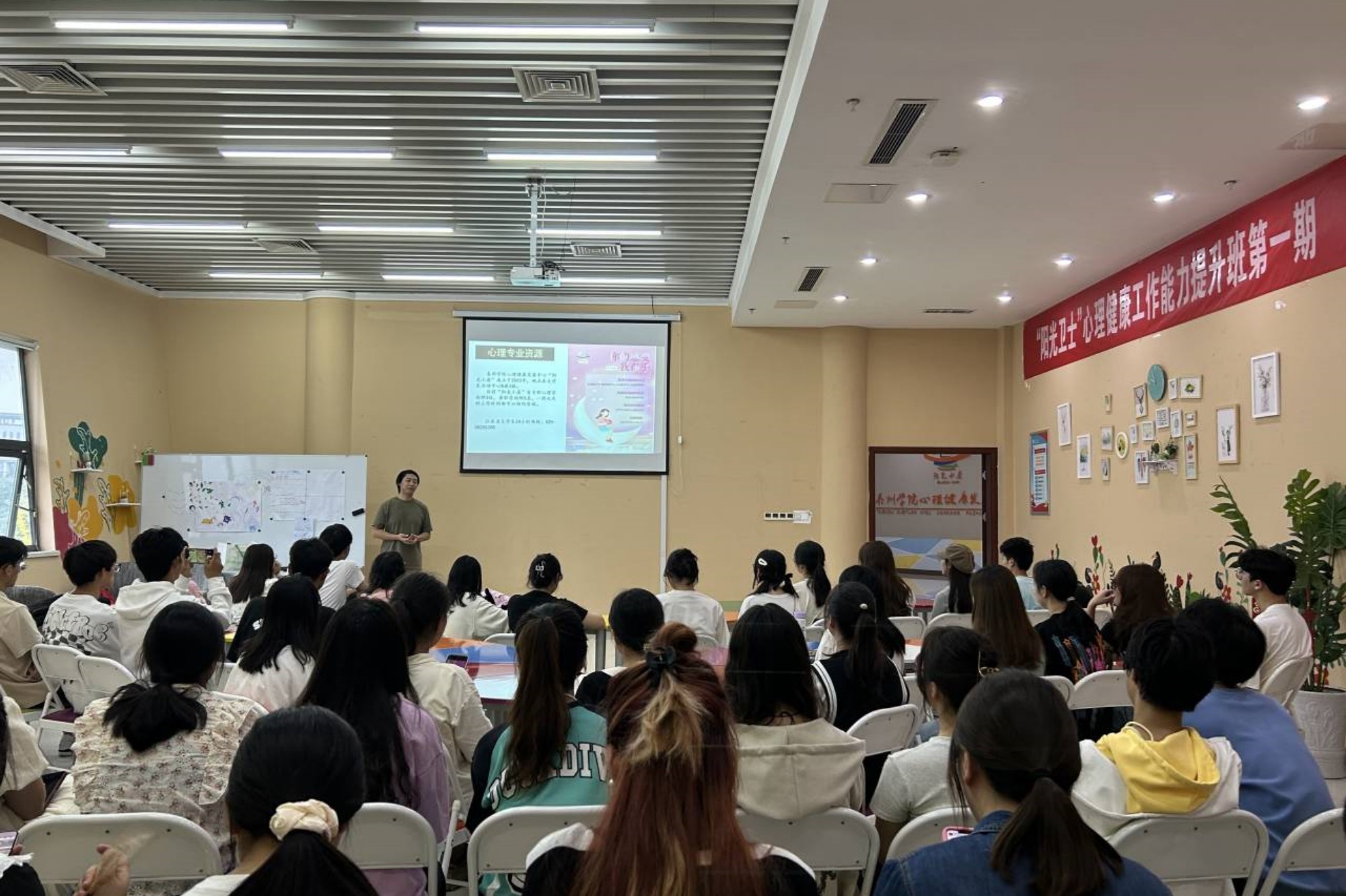 为落实校党委校行政关于加强大学生心理健康教育工作的有关要求,深入贯彻心理危机四级预警体系建设要求,提高心理健康工作学生骨干的专业技能,充分发挥学生自我教育、自我管理、自我服务的能力,提升心理育人成效,心理健康发展中心于9月27日举办了“阳光卫士”心理健康工作能力提升培训班。培训由心理健康发展中心田瑞老师主讲,作为第一批次培训对象,心理健康发展中心学生助理、阳光小屋咨询助理、校自管会心理健康部、心灵之帆心理协会近一百名学生参加培训。