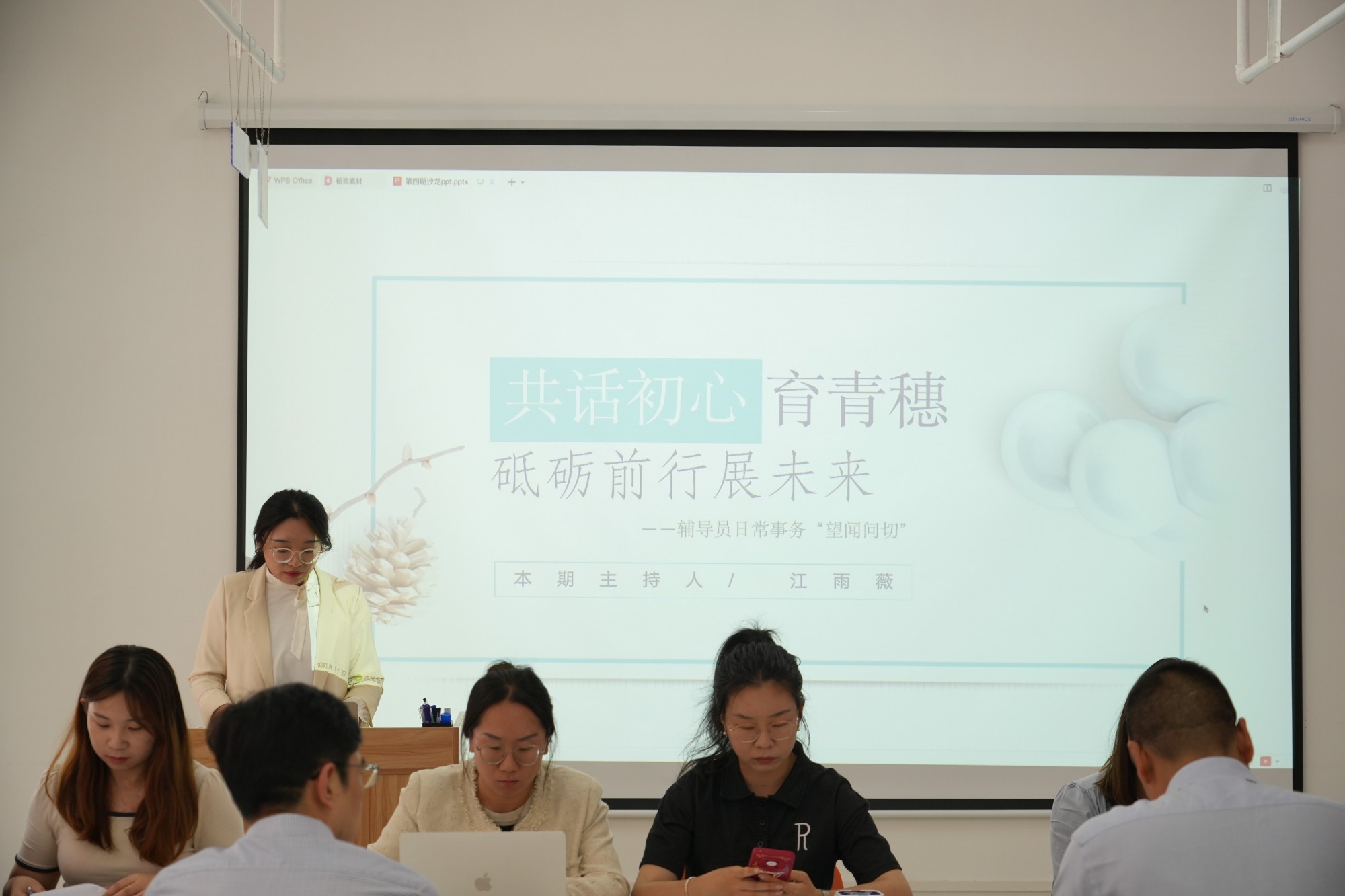 为全面贯彻落实立德树人根本任务,切实加强bat365辅导员队伍建设,搭建辅导员学习工作交流平台,9月28日下午,由党委学生工作部指导,“风者”辅导员工作室承办的2023年第4期辅导员沙龙活动在“一站式”学生社区服务中心顺利举行。本期沙龙以“共话初心育青穗,砥砺前行展未来”为主题,采用“面对面”“老带新”“断案式”的对话交流方式,旨在帮助新入职辅导员尽快提升胜任能力,尽快融入“阳光学工”团队。党委学工部工作人员及新近入职辅导员参加活动,活动由机电工程学院辅导员江雨薇老师主持。