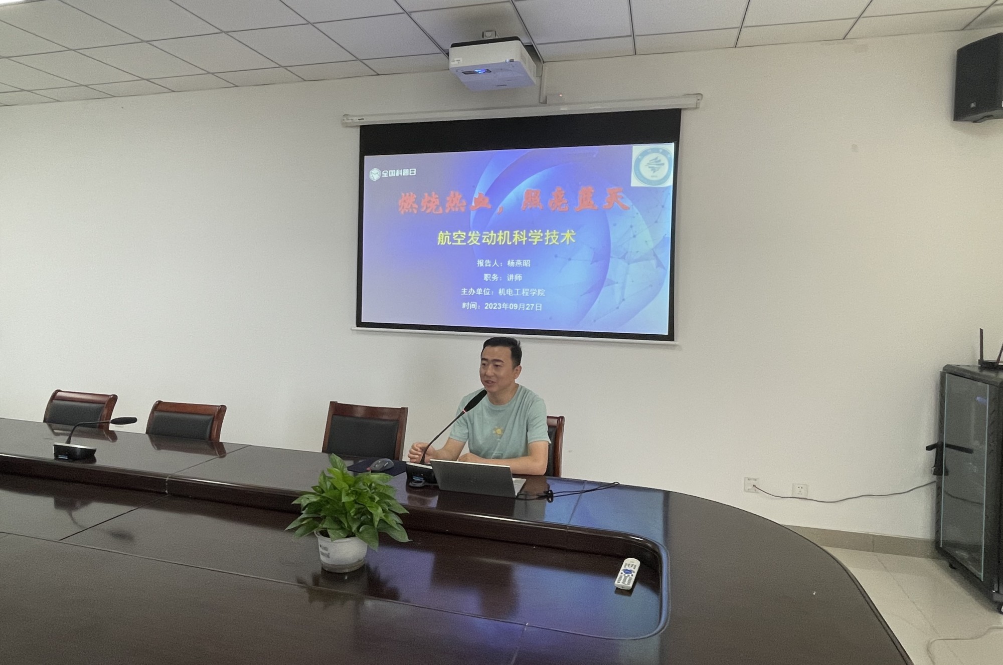为深入弘扬科学精神、普及科学知识,积极响应2023年全国科普日“提升全民科学素质,助力科技自立自强”的活动主题,9月27日,根据泰州市科协相关要求,bat365机电工程学院举办题为“燃烧热血,照亮蓝天——航空发动机科学技术”的专题讲座。讲座由机电工程学院新引进博士杨燕昭主讲。