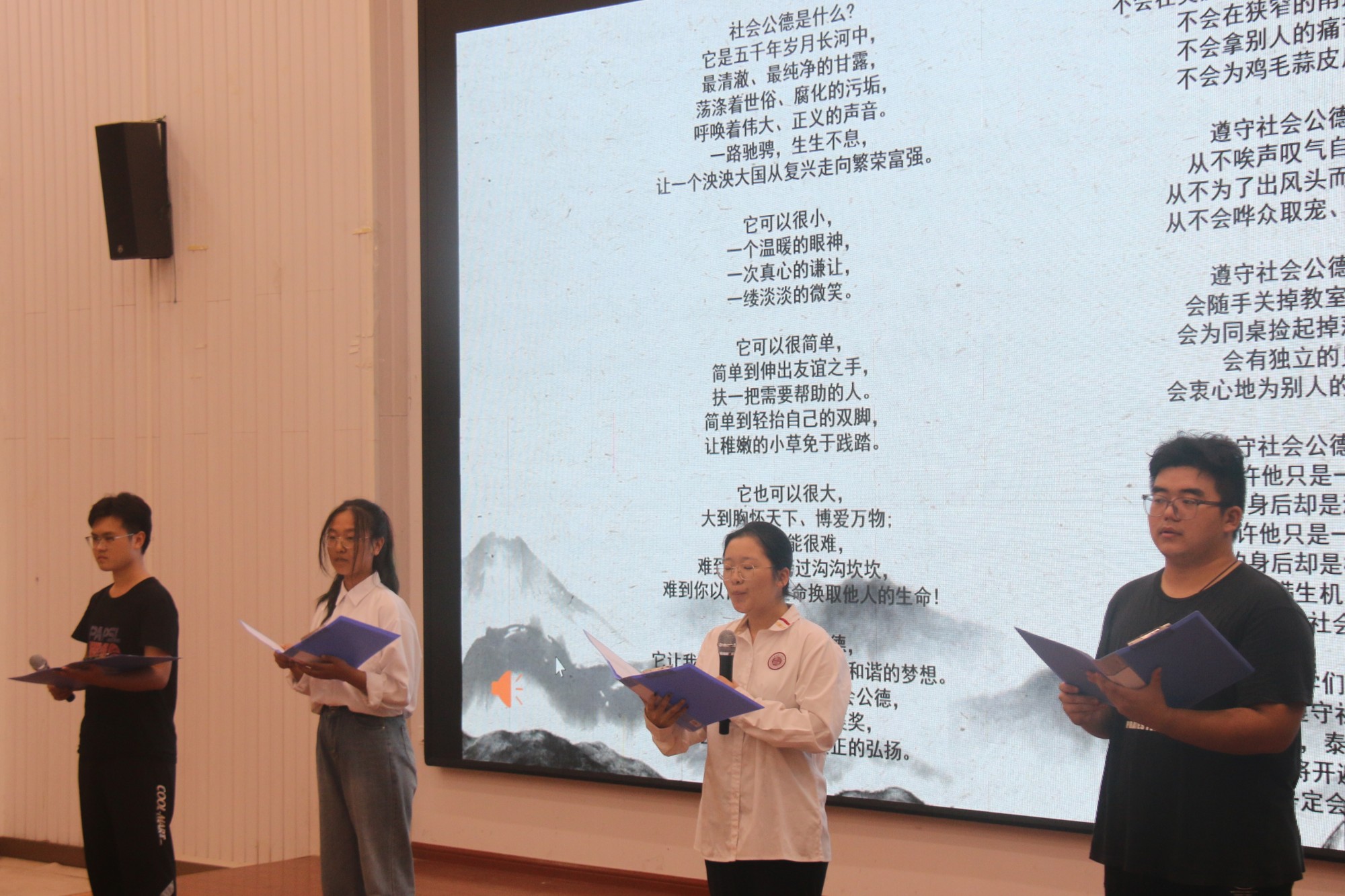 此次道德讲堂,旨在培养学生良好的社会公德意识和文明行为习惯,引导学生自觉维护社会秩序和践行道德规范,争做社会公德引领“践行者”和正能量“传播者”。参与观摩的杨峰同学表示:“在日常生活中,我们将把公德装在心中,把文明礼仪融入生活,把行动担在肩上。从点滴小事做起,做明大德、守公德、严私德的新时代大学生。”