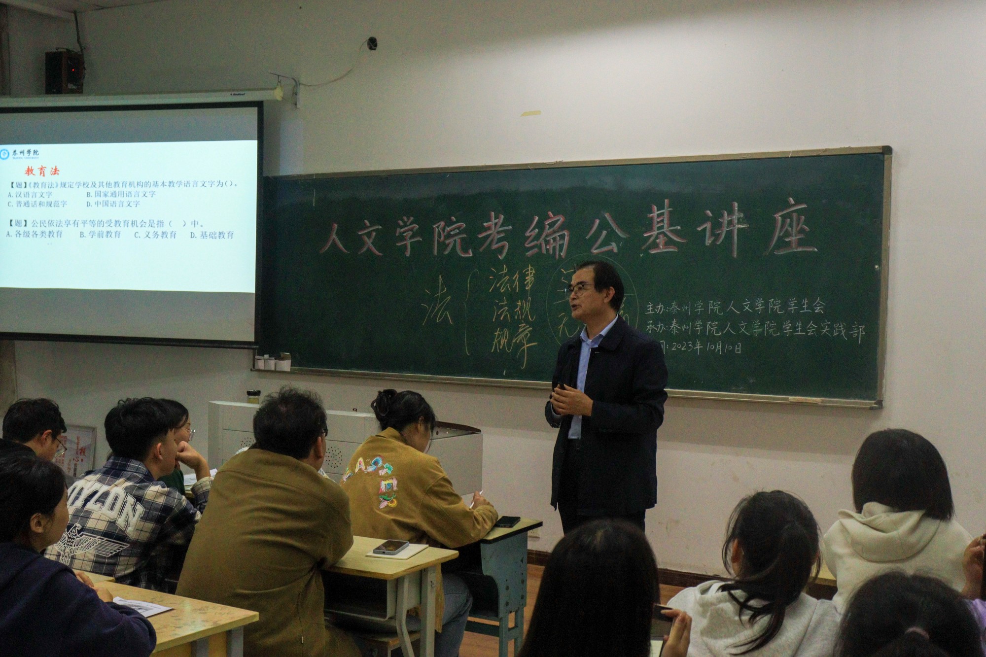 为助力2024届师范生考编,人文学院关工委于10月10日在教学楼1111开展就业指导讲座。讲座邀请人文学院关工委副主任崔昌玺教授主讲,2020、2021级师范生参加此次讲座。