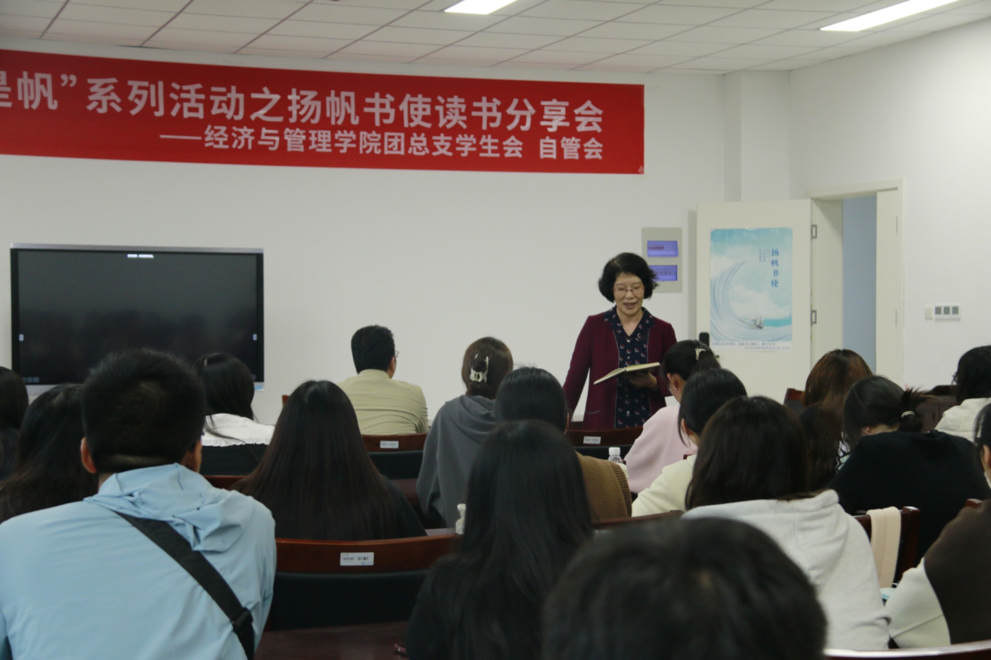 为激发学生阅读兴趣,积极营造学院“爱读书、读好书、善读书”的浓厚氛围,10月13日,经济与管理学院开展“扬帆书使”读书分享会,邀请学院关工委委员杨美霞教授、学院党政领导和相关辅导员老师参与本次活动。