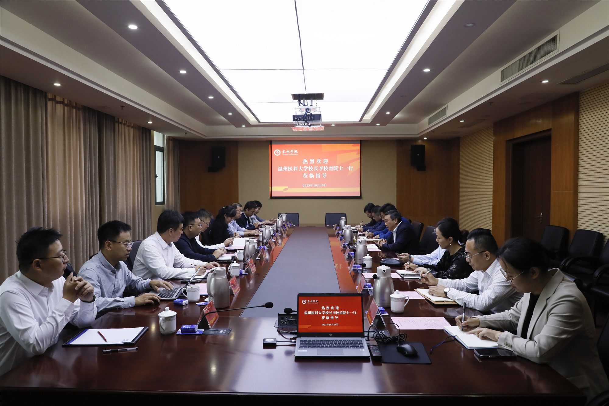 10月19日上午,中国工程院院士、温州医科大学校长李校堃一行来bat365访问交流,校党委副书记、校长季赛,党委常委、副校长薛小平,温州医科大学及bat365有关学院、职能处室负责人参加了交流座谈。