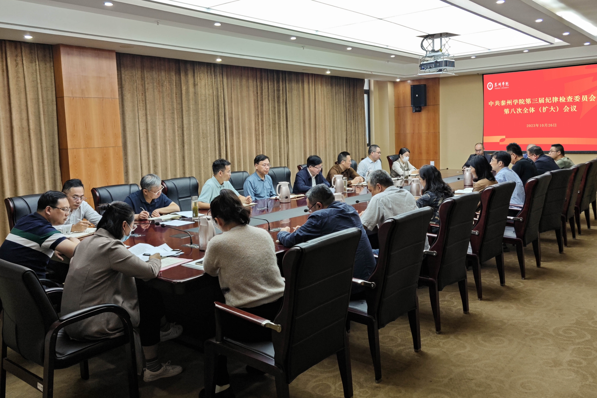 10月26日,校纪委召开三届八次全体(扩大)会议,校党委常委、纪委书记、派驻监察专员何军主持会议并讲话。全体纪委委员、二级党组织纪检委员及纪委办相关人员参加会议。