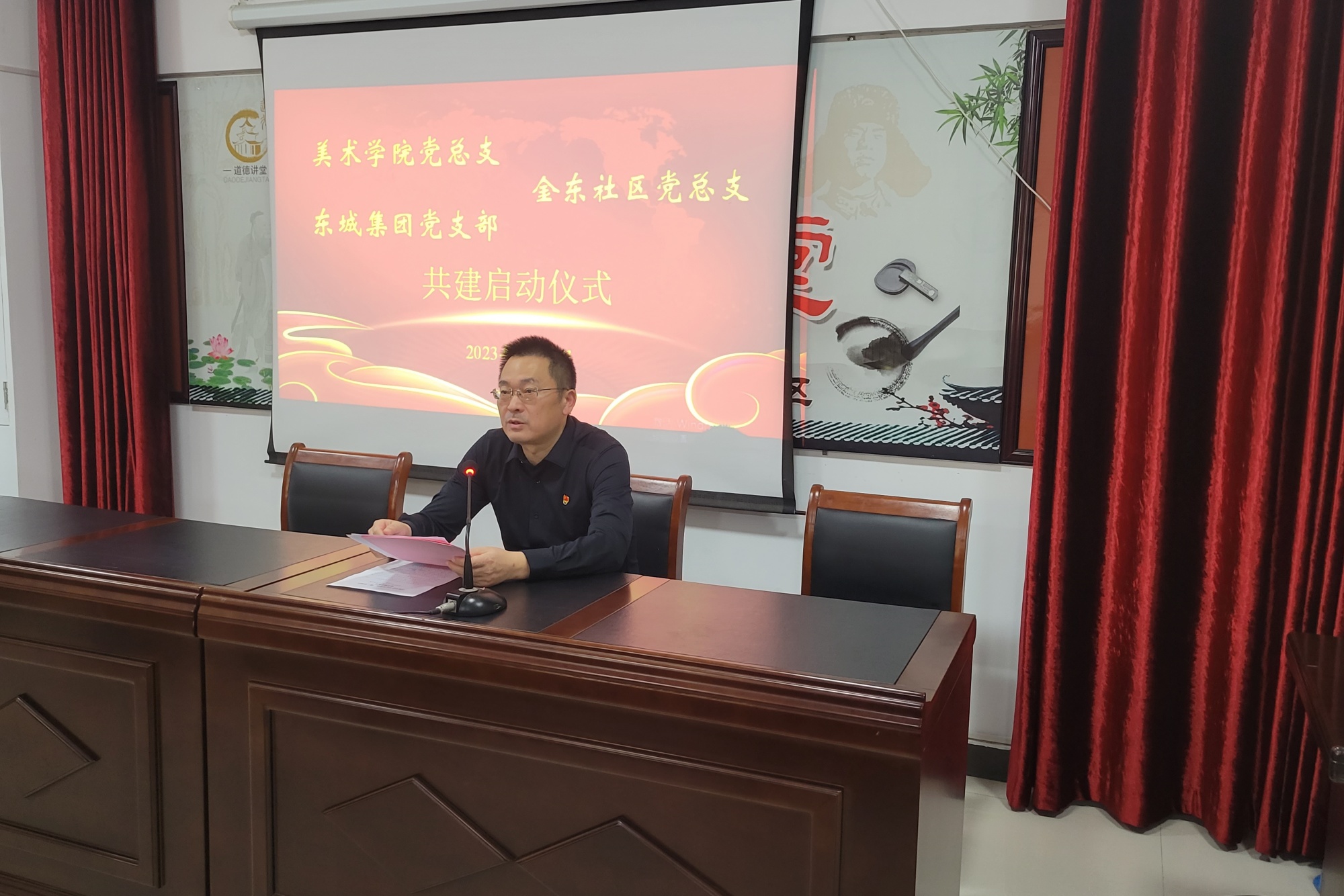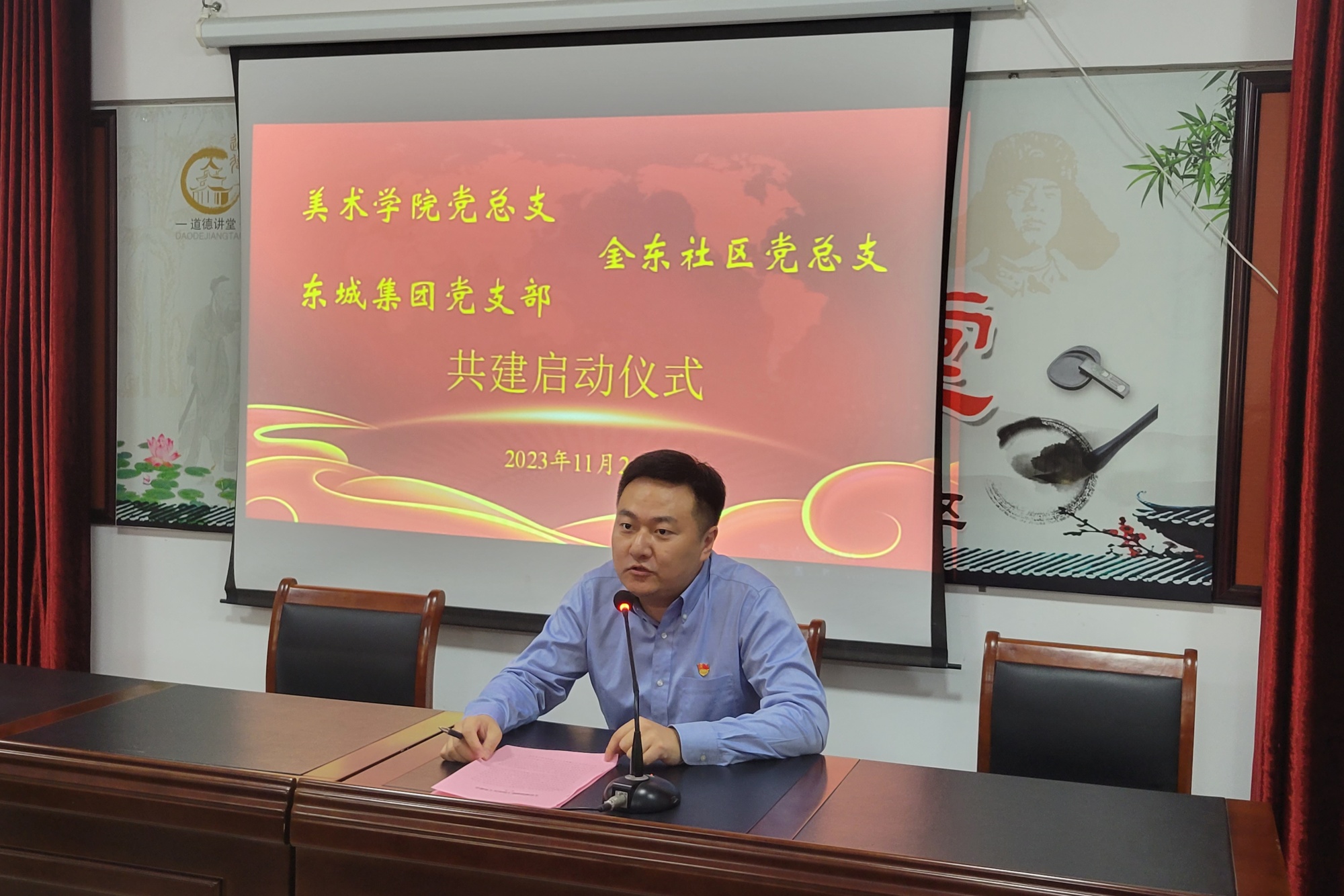 活动中,美术学院党总支书记吴新林、东城集团党支部书记黄亮、金东社区党总支书记徐涛举行共建签约仪式。