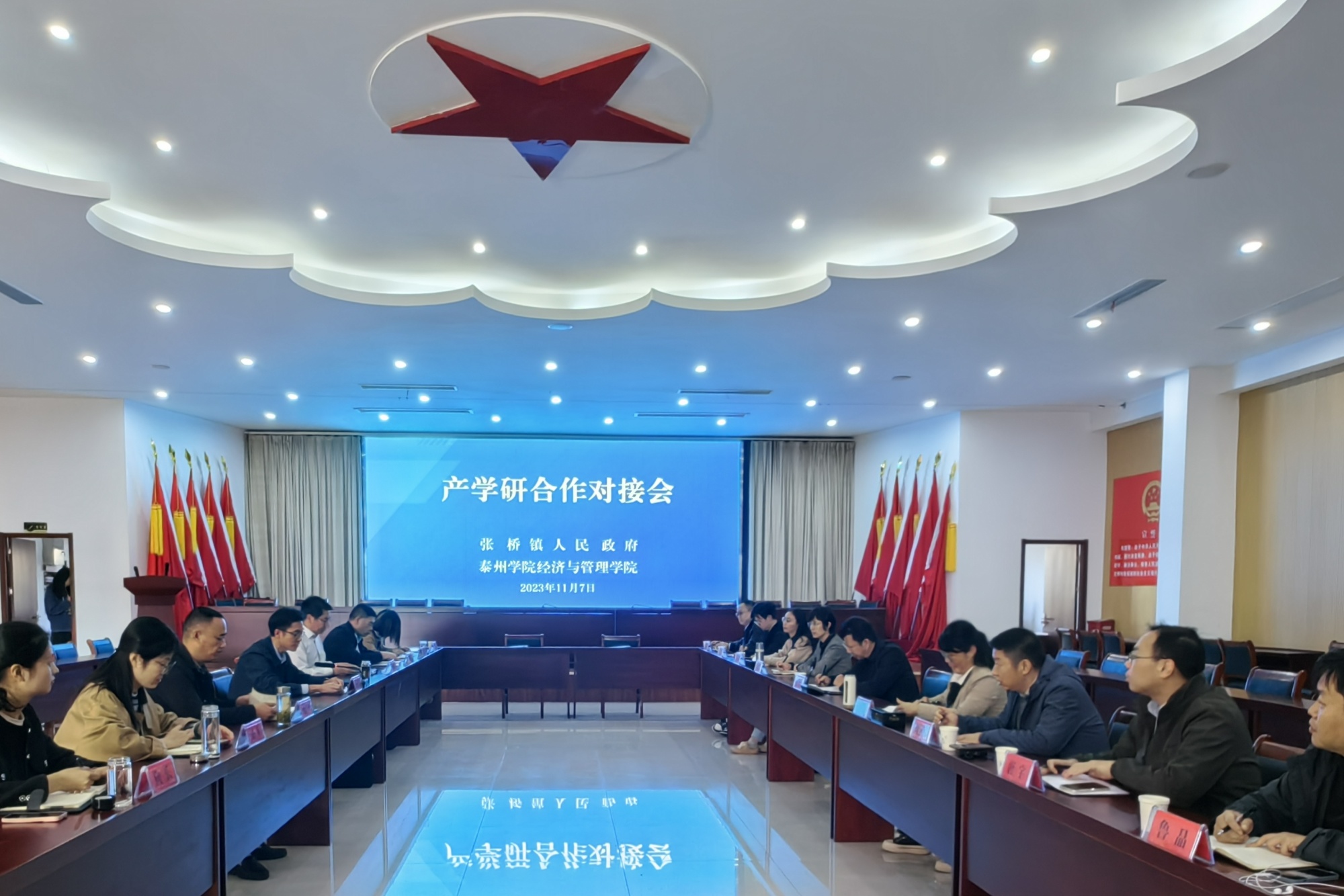 活动中,张桥镇党委书记王永富对刘荣江一行的到来表示欢迎,并就张桥镇党建工作开展情况和经济社会发展情况作了详细介绍。刘荣江对张桥镇在工业经济建设、现代农业发展等方面表示肯定,随后双方就党建联动、校地合作平台的搭建进行交流研讨。