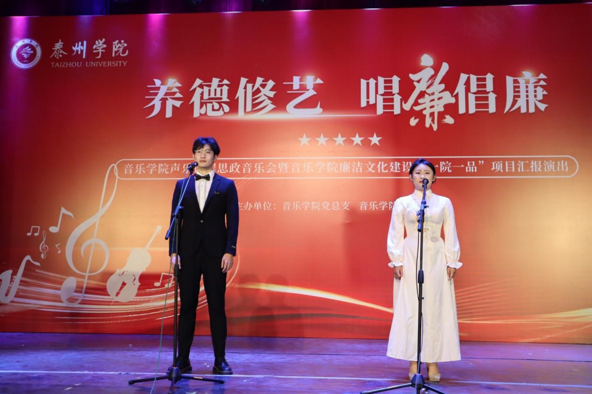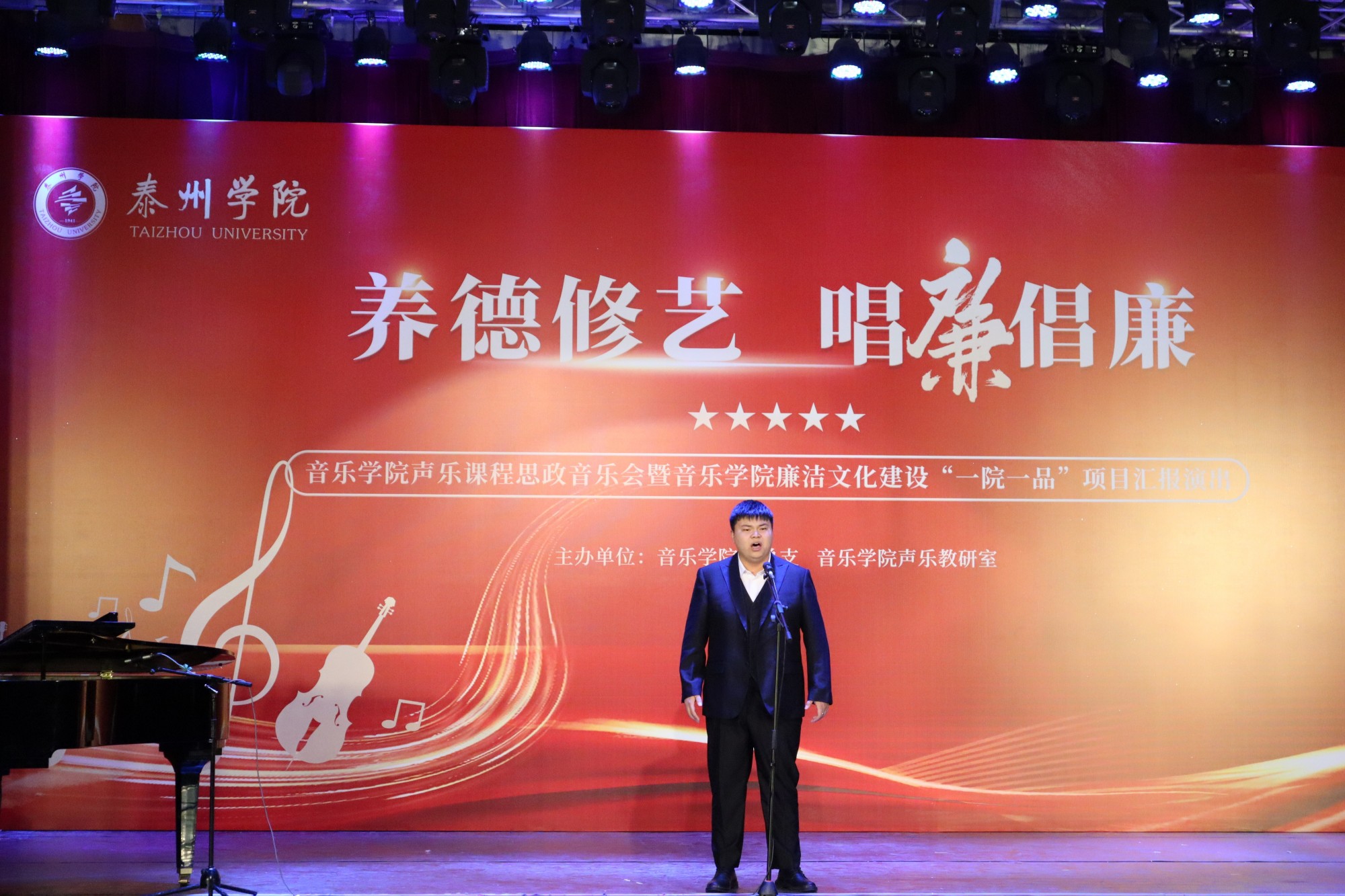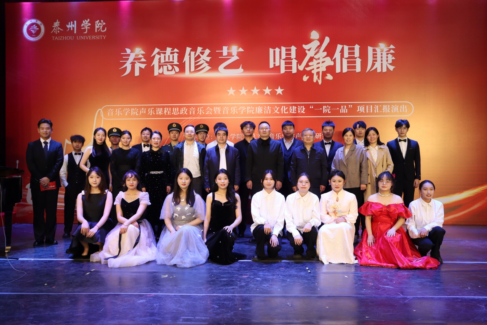 为进一步厚植校园廉洁文化土壤,深入实施育廉工程,弘扬崇尚廉洁良好风尚,11月8日晚,音乐学院“养德修艺 唱廉倡廉”声乐课程思政音乐会暨廉洁文化建设“一院一品”项目汇报演出在艺术楼2120举行。校纪委副书记、纪委办公室主任张朝明等相关人员出席,音乐学院党总支书记刘江元致辞。音乐学院声乐教研室全体老师和2023级全体新生观看了演出。
