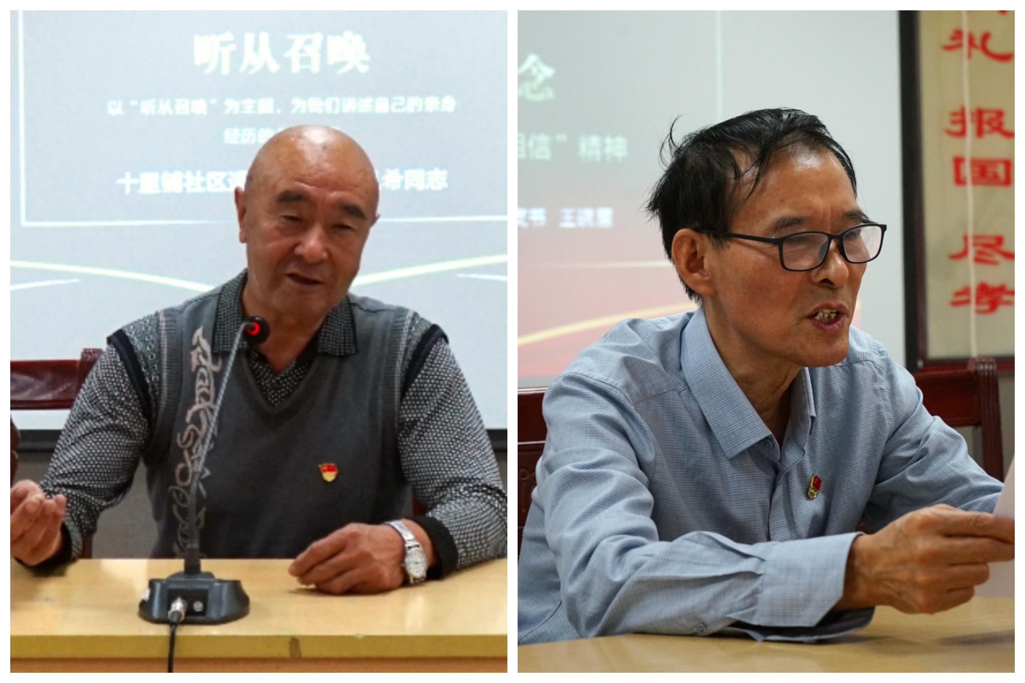 接着,十里铺社区的退役老兵窦凤希、老党员王碗居也为学生们讲述了不一样的故事。老兵窦凤希同志结合自己早年参军经历,讲述自己的军旅生活,告诫在场同学们时刻听党话、跟党走,不懈奋斗。而老党员王碗居则以杨根思的“三个不相信”为主题为同学们开讲,勉励青年大学生要铭记历史,珍惜今天来之不易的生活,不怕困难,勇于挑战。