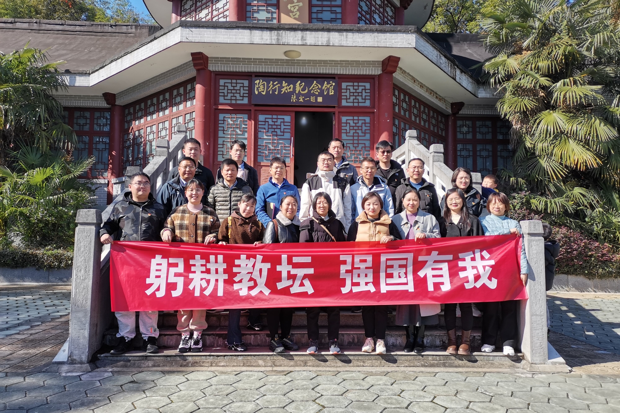 为大力弘扬教育家精神,引导全院教职员工以陶行知等教育家为榜样,坚定理想信念,涵养教育情怀,加强师德师风,培育时代新人,11月18日上午,信息工程学院党总支、分工会联合组织教职员工赴南京晓庄学院行知园开展“躬耕教坛、强国有我”主题党日活动。
