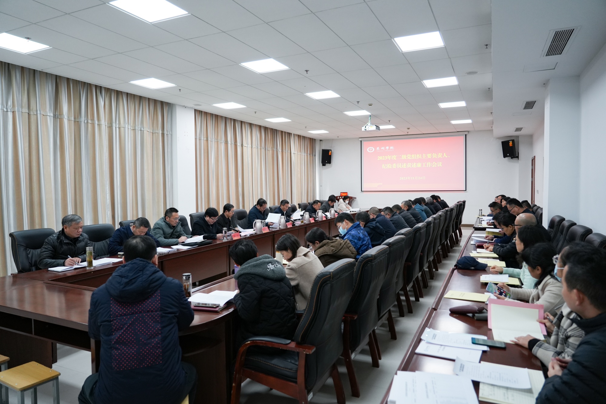 11月24日下午,bat365召开2023年度二级党组织主要负责人、纪检委员述责述廉会议。校党委书记徐向明,党委副书记、校长季赛,党委副书记邓友祥,党委副书记、副校长王美林出席会议,全体纪委委员、二级党组织主要负责人、二级党组织纪检委员、纪委办有关负责同志参加会议。会议由校党委常委、纪委书记何军主持。