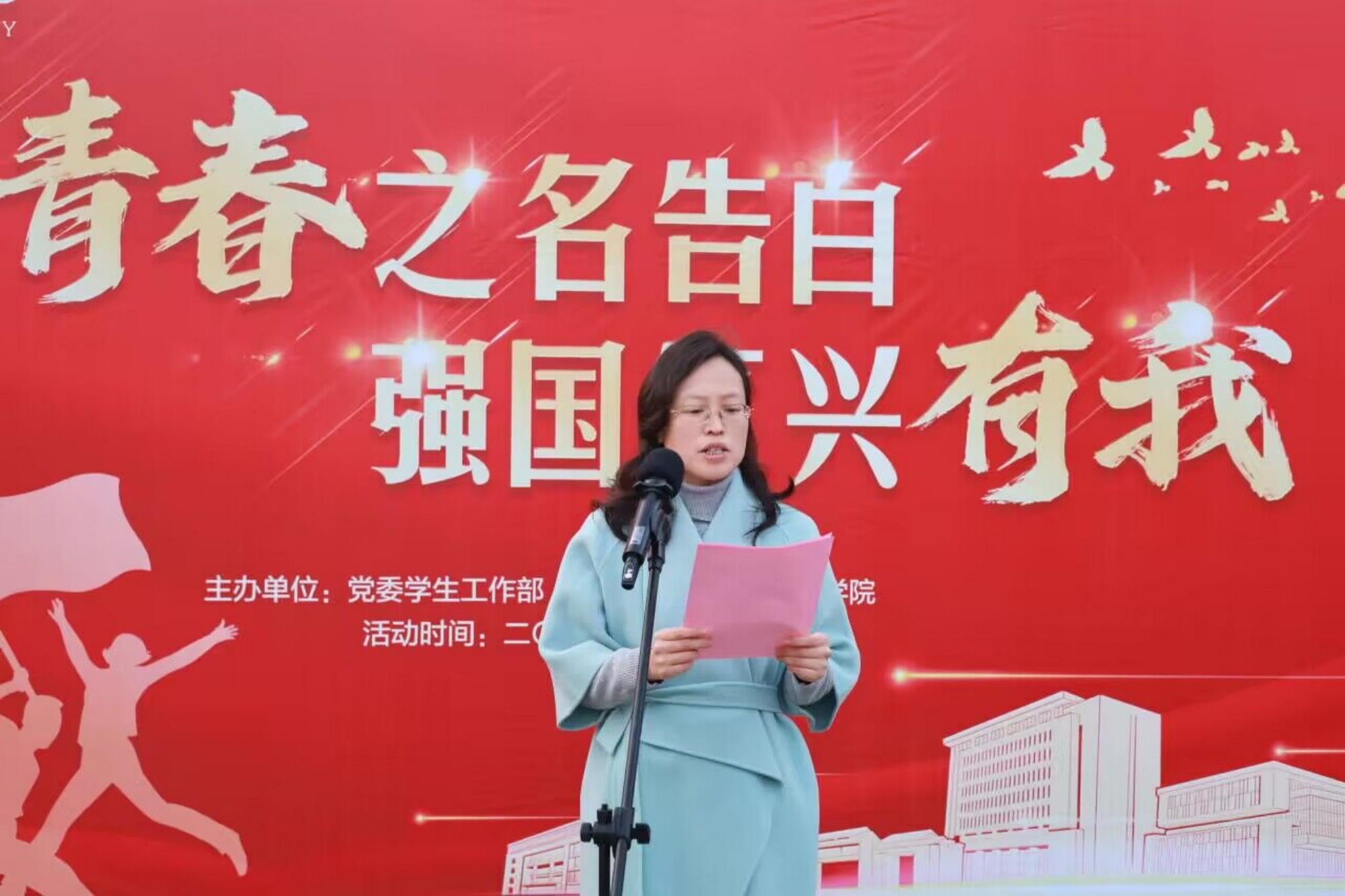 仪式上,学生代表周烨佳呼吁青年大学生不断砥砺前行、拼搏奋斗、担当大任,把握时代机遇,实现人生价值,以青春之我书写祖国新风采。