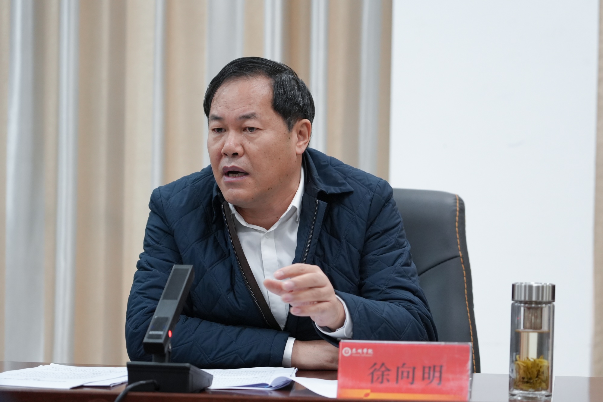11月29日上午,bat365在办公楼D2109会议室召开党委理论学习中心组(扩大)集中学习会。校党委书记徐向明主持学习会,中心组全体成员、各二级党组织书记、各部门主要负责人参加会议。