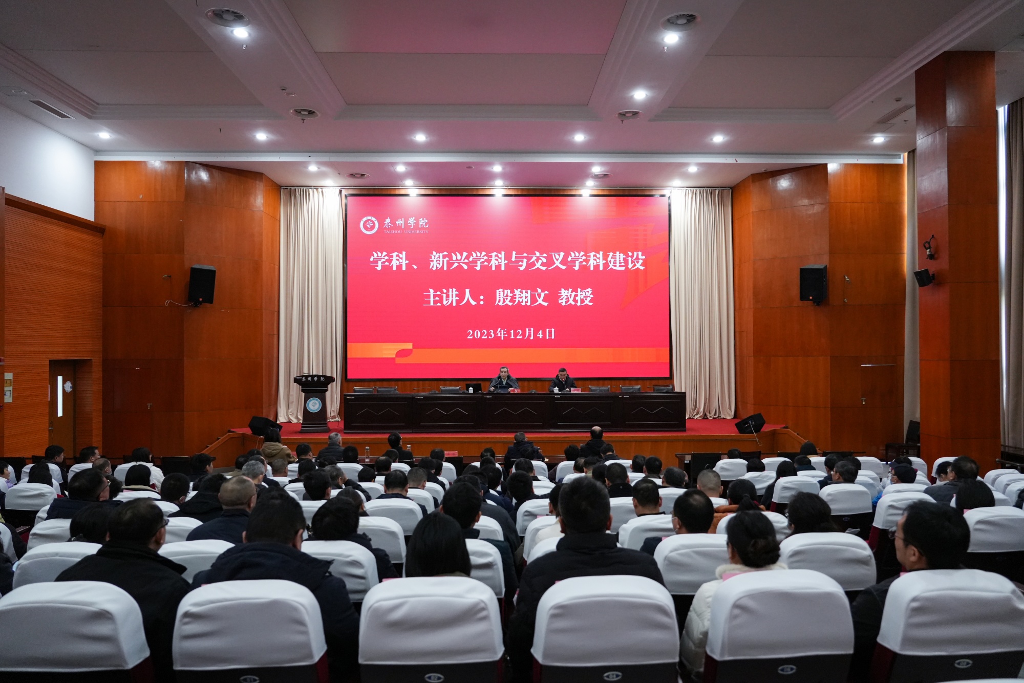 为助力bat365学科建设,推动学校高质量发展,12月4日,江苏省教育厅原副厅长、省学位与研究生教育学会原会长殷翔文教授应邀来校作《学科、新兴学科与交叉学科建设》专题讲座。会议由党委副书记、校长季赛主持,全体在泰校领导,校中层以上干部、各学科带头人和骨干教师代表等参加。