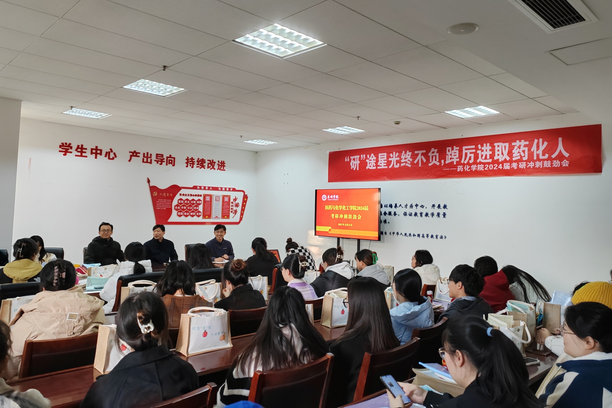 为帮助2024届考研学生缓解压力、坚定信心,12月8日下午,医药与化学化工学院举办了考研冲刺鼓劲会。医药与化学化工学院党总支书记徐小兵等领导,辅导员和考研学生代表参加本次活动。