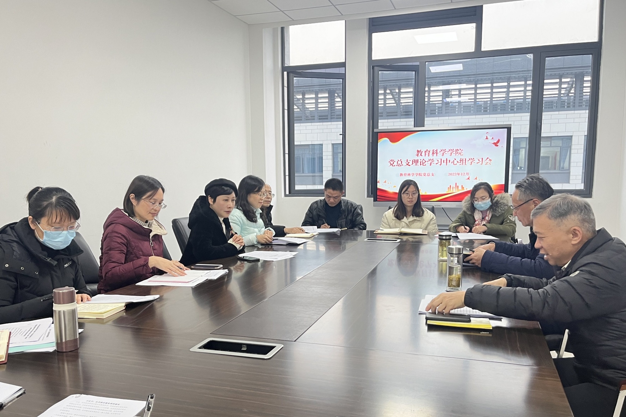 本次中心组学习的主题是建设教育强国。学院党总支理论学习中心组成员毛华芳、黄震分别领学了“习近平:扎实推动教育强国建设”、“习近平致全国优秀教师代表的信”。郭海燕、蒋新秀围绕学习内容,联系自身思想和工作实际进行了交流发言。