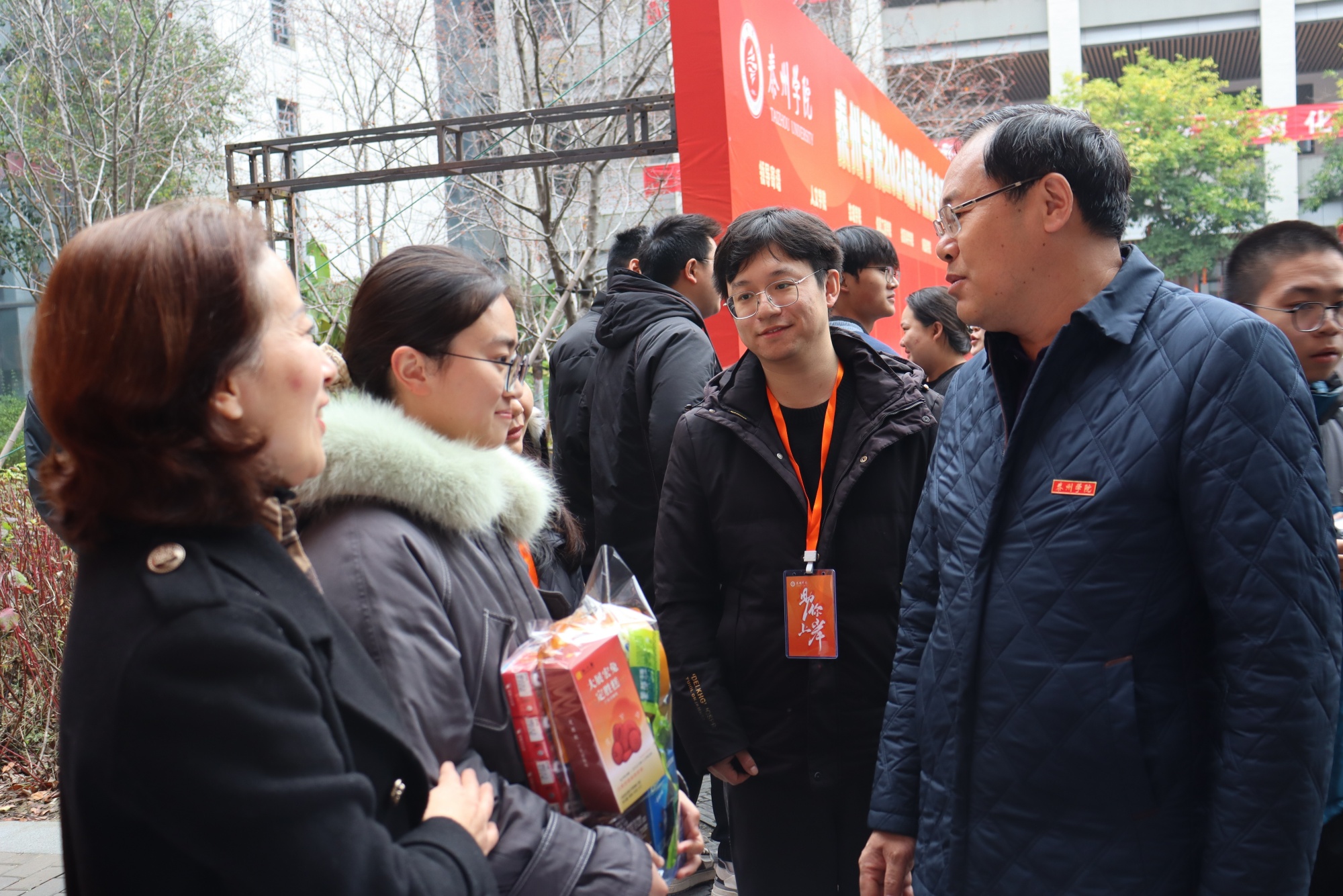 寒冬送暖,研途助力。在2024年研究生入学考试即将到来之际,为鼓舞学生考研士气,增强学生考研信心,12月14日下午,校党委书记徐向明,党委副书记、校长季赛,党委常委、副校长卜慧芬到高质量就业备考楼慰问2024届考研学子。学工处负责人、各二级学院负责人陪同慰问。