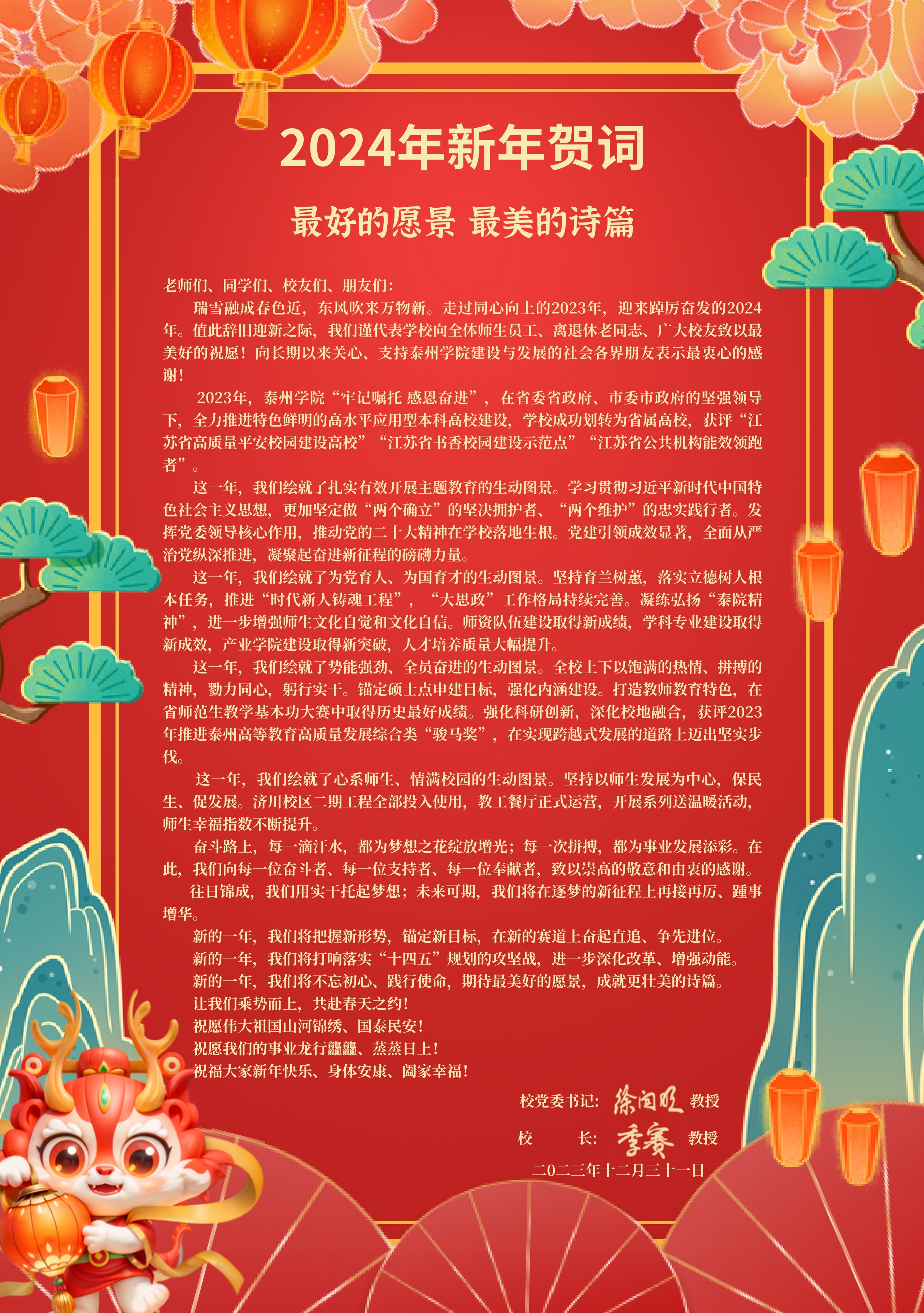 最好的愿景 最美的诗篇——校党委书记徐向明、校长季赛2024年《新年贺词》