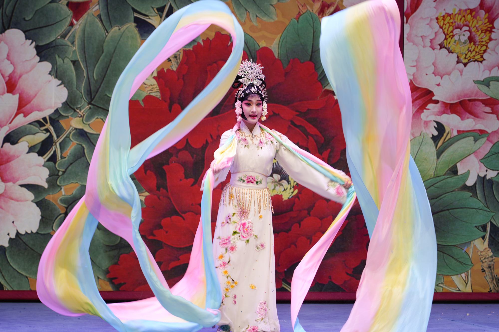 《天女散花》是梅兰芳先生改编自佛教故事的创新剧目,天女碎步小走,彩绸随激越的琴弦,时而舒展,时而翻卷,台下掌声不断。《扈家庄》中武旦唱段与作功的配合之妙,令人赞不绝口。忠于爱情、果敢坚定的虞姬是梅先生创作的最经典的舞台形象之一,作为梅派经典,《霸王别姬》以语调绵长的念白、精美的服饰妆容、扎实的基本功向观众展示了京剧独有的魅力。