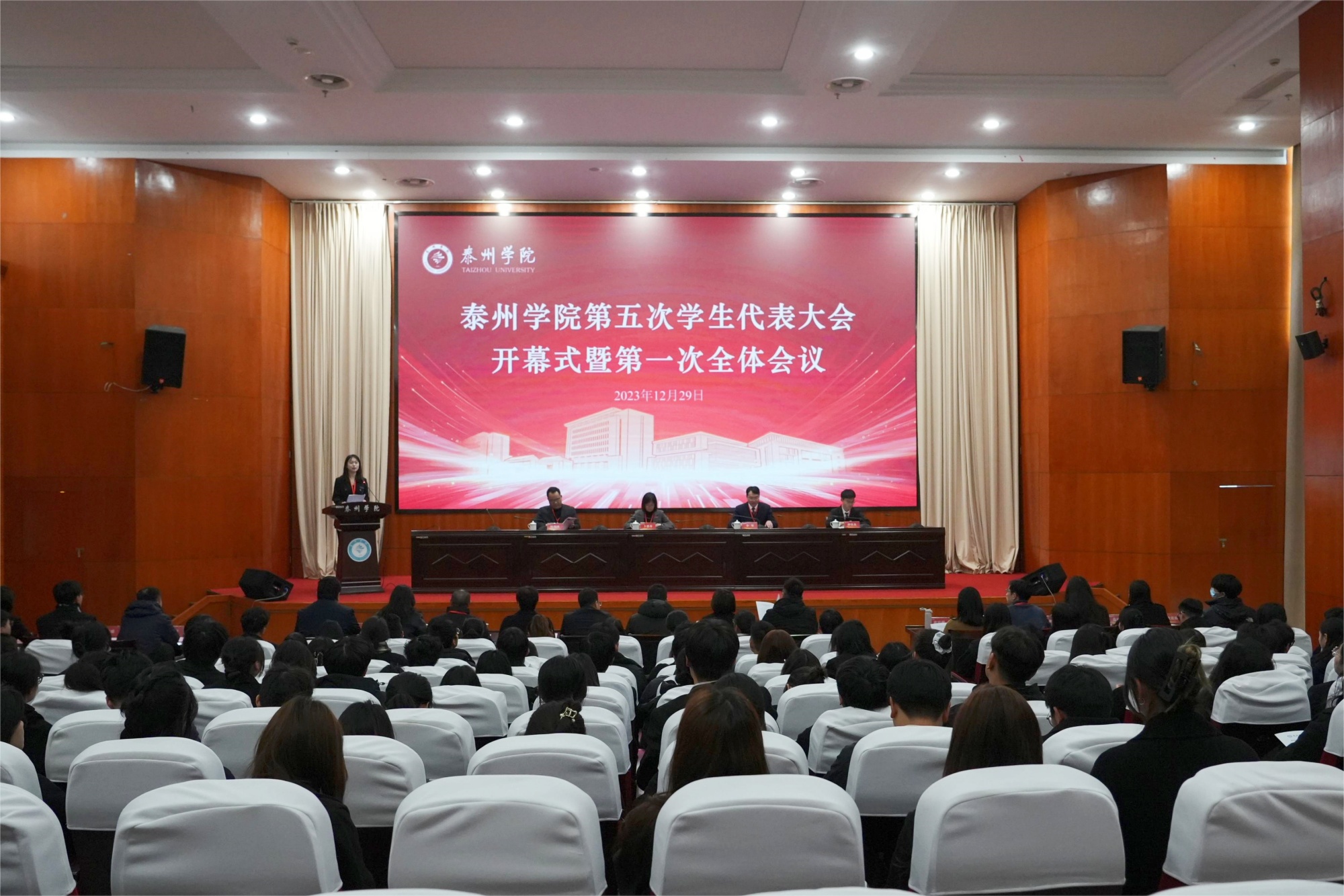 12月29日下午,bat365第五次学生代表大会在行政楼胡瑗讲堂召开。校党委常委、副校长卜慧芬,团市委学少部负责人、市学联秘书长李坚,校党委学工部部长、二级学院学生工作负责人、团总支负责人、在泰高校学生会代表出席了开幕式。