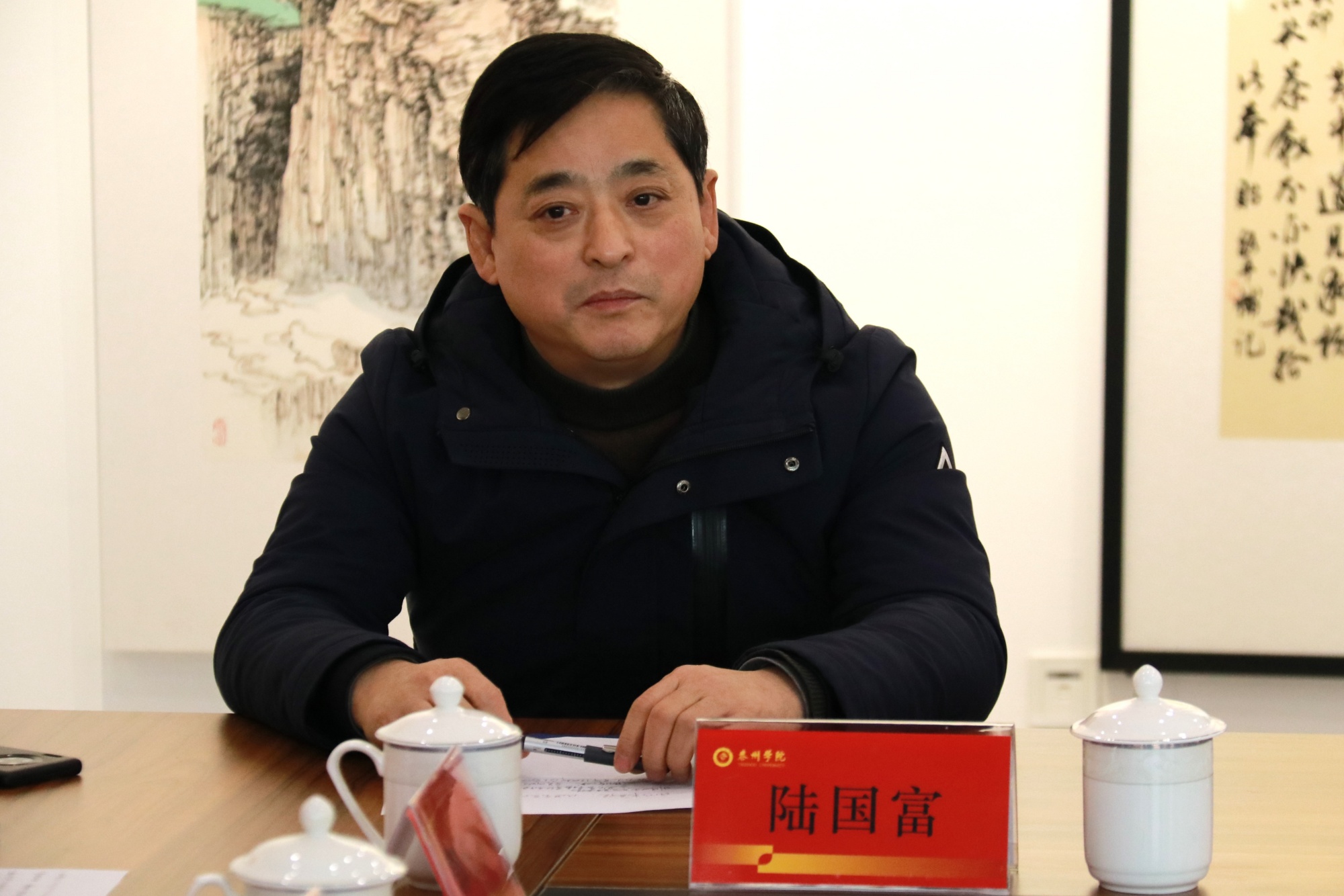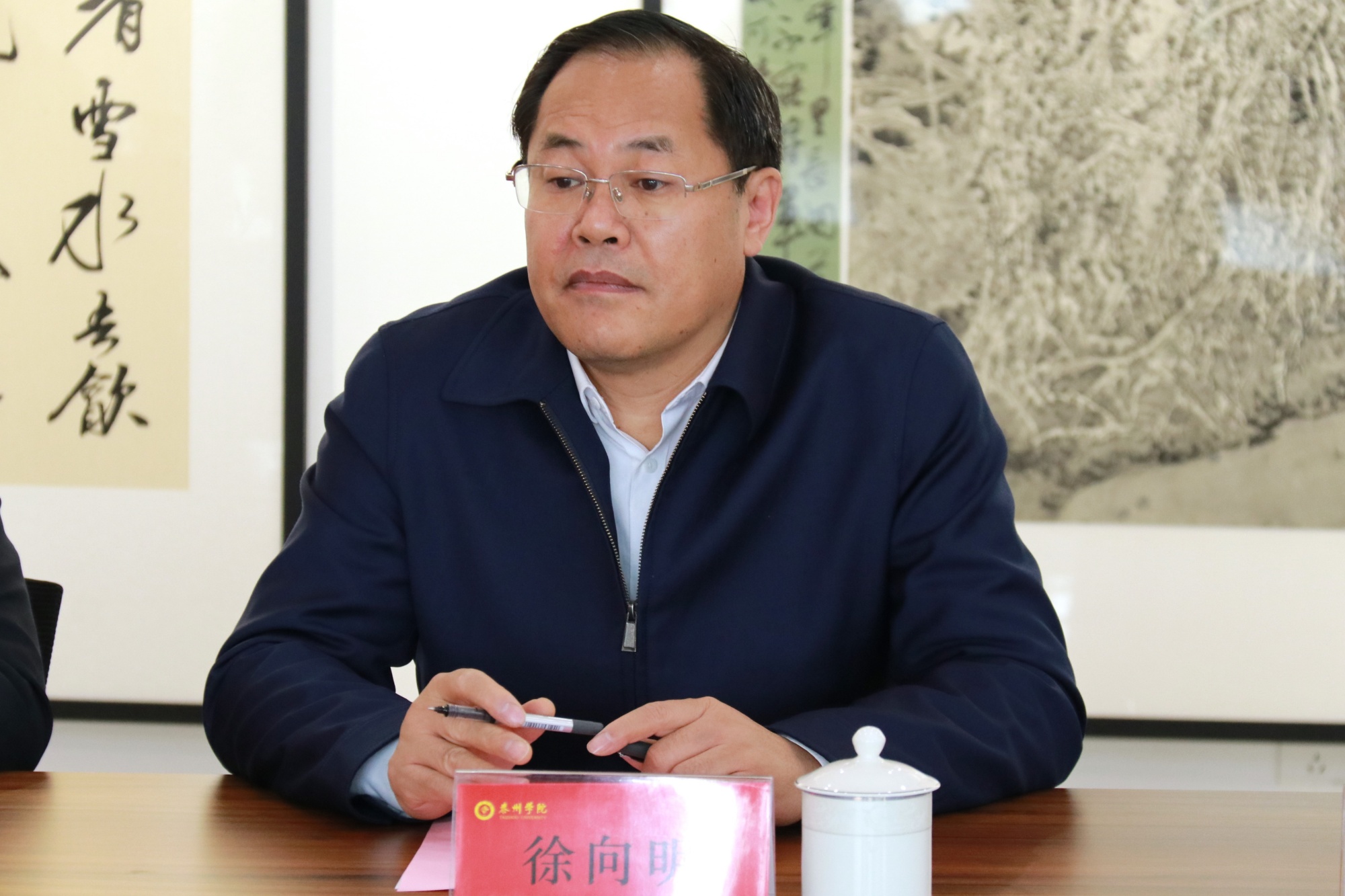 徐向明代表学校对省市各位领导的到来表示热烈欢迎,对大家长期以来对学校的关心支持表示感谢。他介绍了学校建校及发展的基本情况,并指出学校党委一直高度重视统战工作,引导统战人员在教学、科研、管理和社会服务中发挥重要作用。他表示,学校大力支持民进泰州开明书画院建设,希望书画院坚持以习近平新时代中国特色社会主义思想为指导,贯彻落实习近平文化思想,着力建设一个汇聚智慧、凝聚力量的平台,为学校事业高质量发展,为地方经济社会发展创作更多优秀的书画作品、贡献更多优秀的思想和方案。