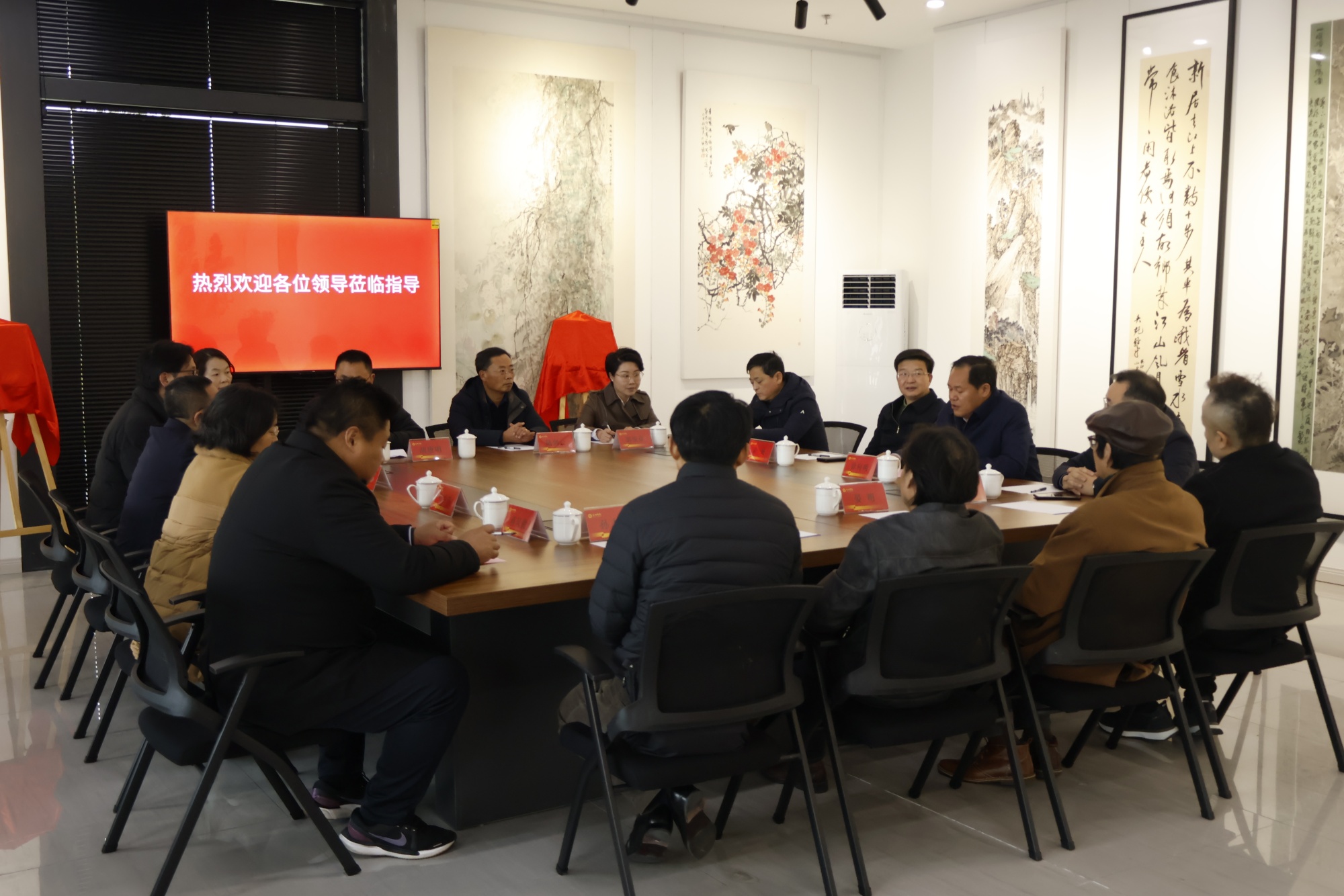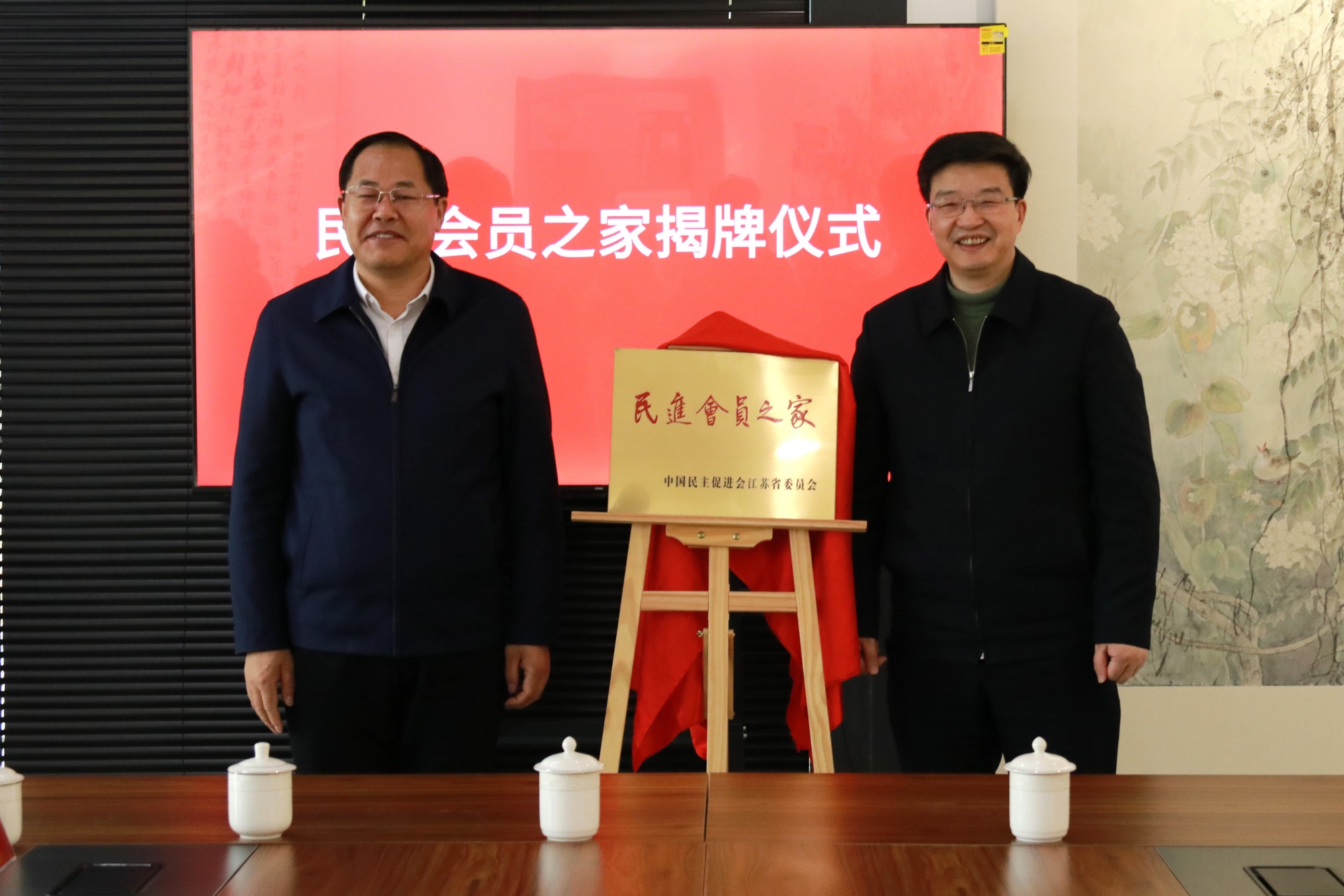 会上,余珽和徐向明为“民进会员之家”揭牌,陆国富和民进江苏省委会联络处处长薛伟为“民进泰州书画院揭牌”。全国人大代表、民进泰州总支主委、bat365美术学院院长黄平汇报了开明书画院筹建情况。