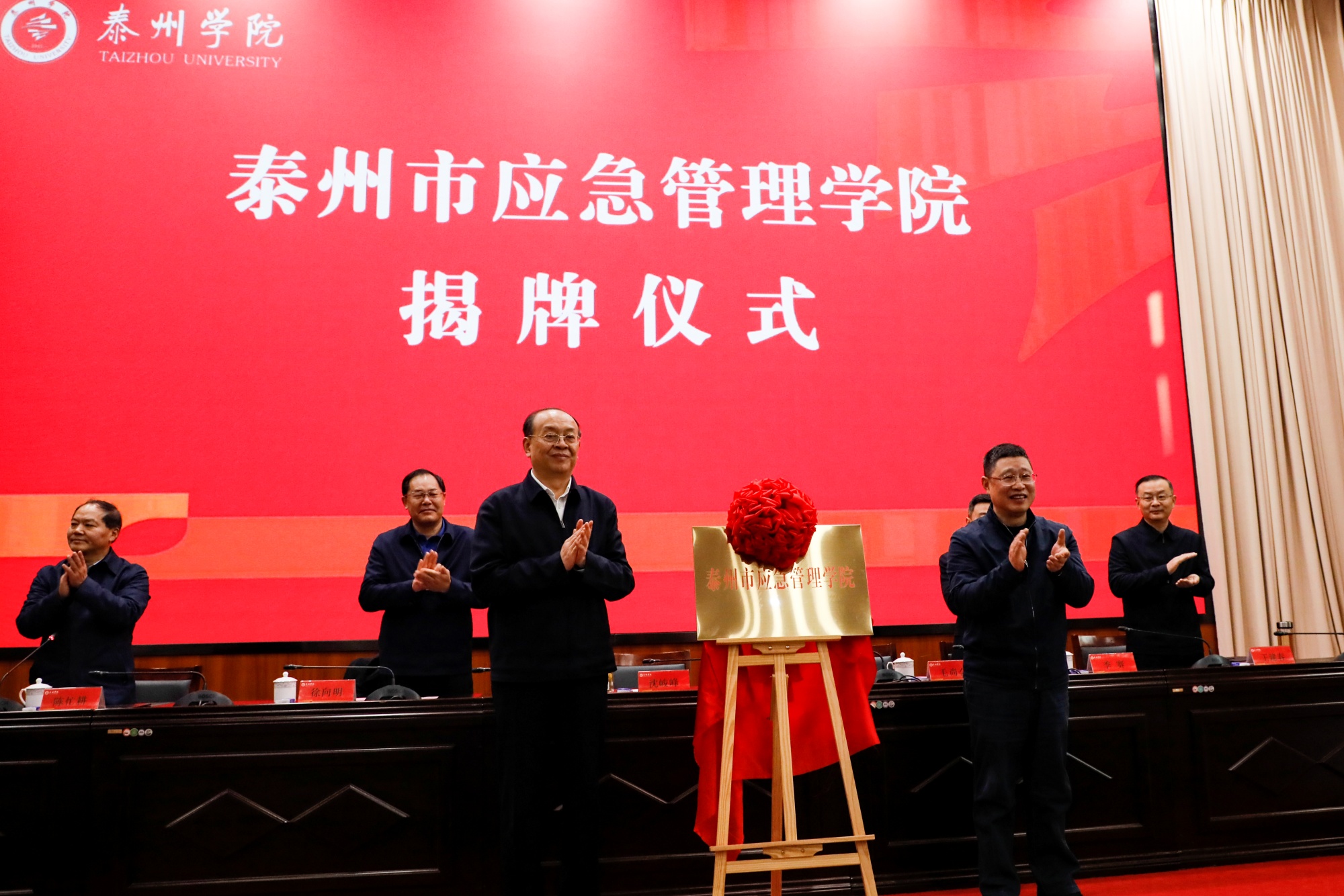 沈峻峰、毛尚会共同为泰州市应急管理学院揭牌。