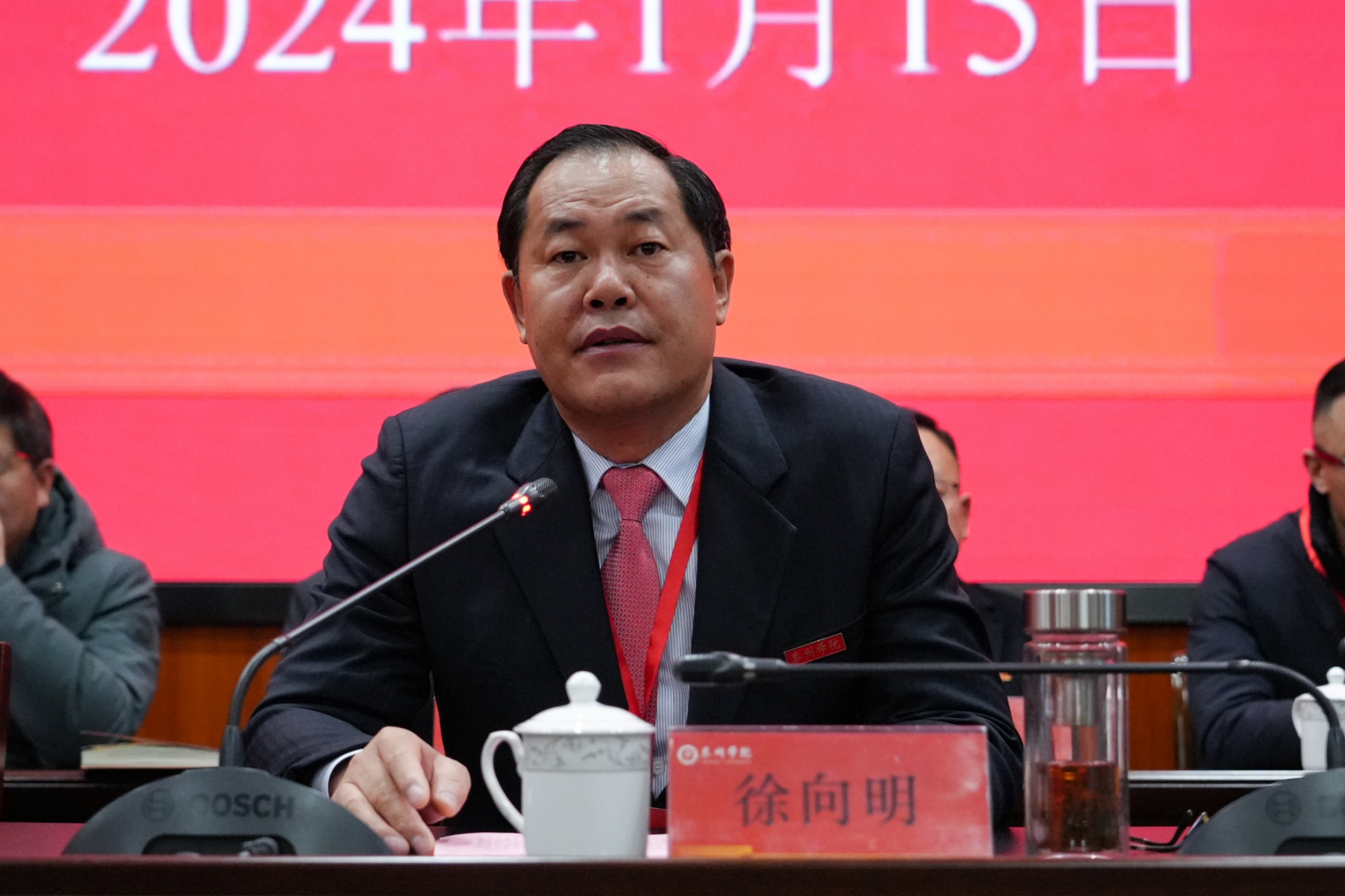 徐向明在讲话中指出,本次会议是学校划转为省属高校后的首次“两代会”,是一次团结民主、务实奋进、凝聚力量的大会。为了更好地在学校事业高质量发展的新征程上攻坚克难、争先进位,徐向明提出四个“必须”:一是必须旗帜鲜明讲政治,持续强化政治理论武装,全面落实立德树人根本任务,贯彻落实党的决策部署,始终在思想上、政治上、行动上同以习近平同志为核心的党中央保持高度一致;二是必须保持赶考心态,进一步解放思想、深化改革、练好内功,努力争先进位;三是必须全力以赴抓落实,要以闯的精神、创的劲头、干的作风,争先进位、脚踏实地、团结奋进;四是必须树牢宗旨意识,在促成长、助成才,办实事、解难事,讲民主、优机制上下功夫,以接地气、暖人心的工作举措赢得师生的信赖。徐向明号召,全校上下更加紧密地团结在以习近平同志为核心的党中央周围,坚定不移以习近平新时代中国特色社会主义思想为指导,锚定目标争先进位,攻坚克难担当作为,齐心协力推进学校事业更高质量发展!
