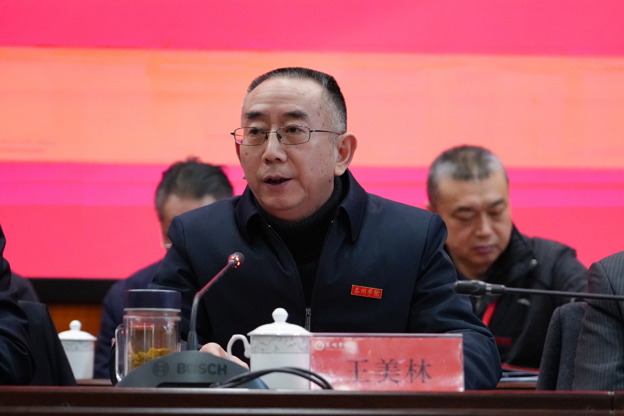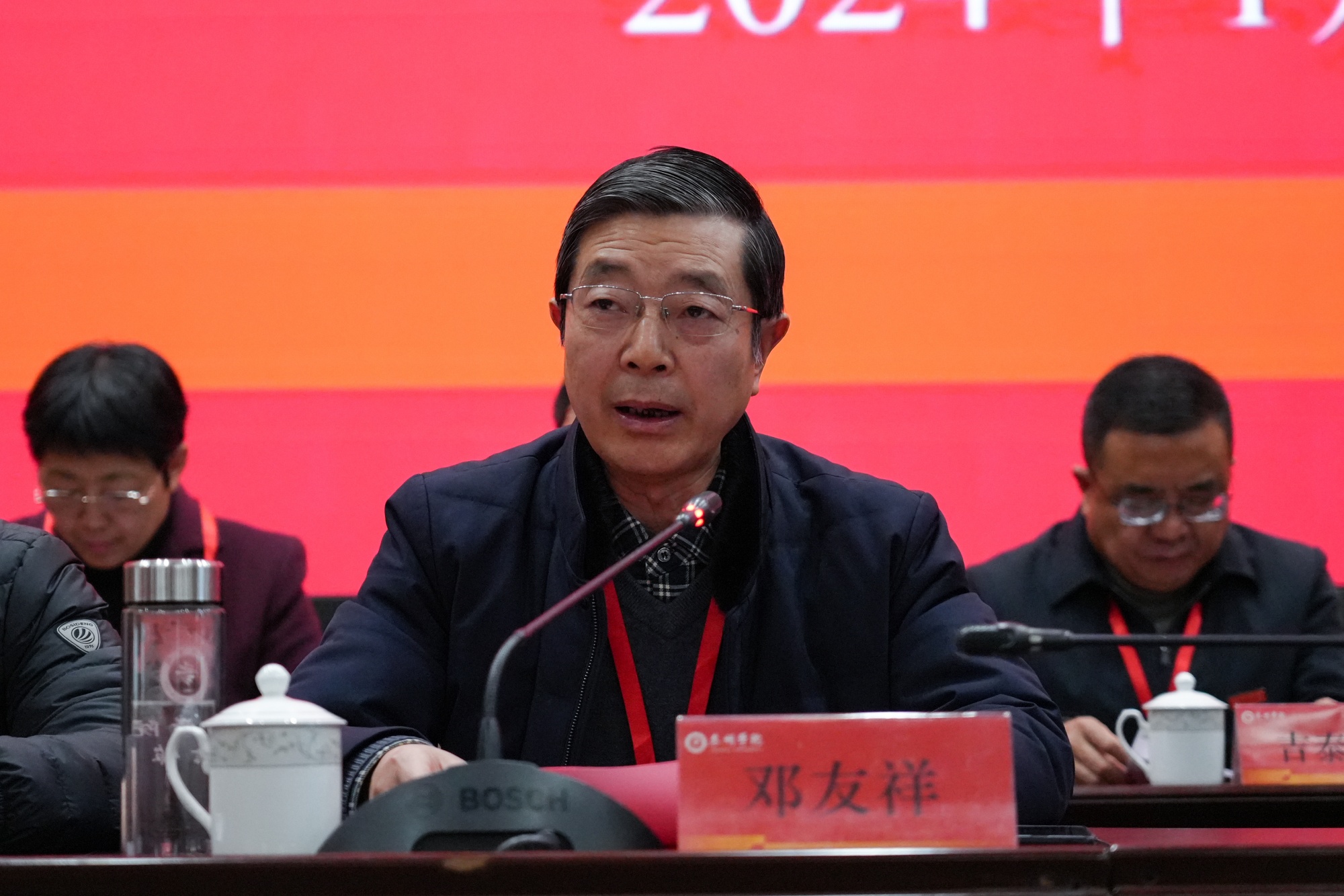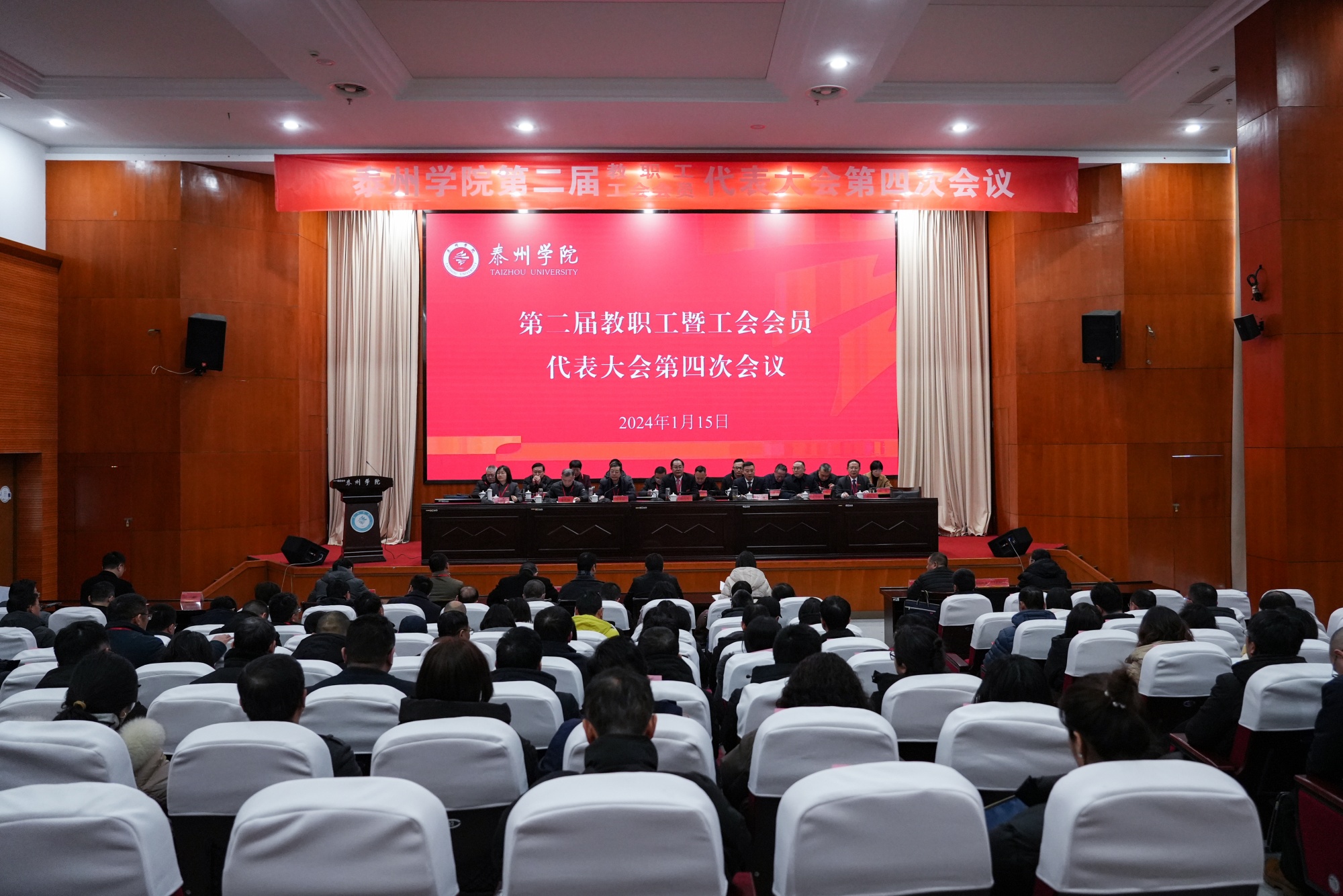 1月15日,bat365第二届教职工暨工会会员代表大会第四次会议在D1216会议室举行。全体正式代表、特邀代表、列席代表100余人参加会议。校党委书记徐向明作总结讲话,党委副书记、校长季赛作学校工作报告,党委副书记邓友祥主持第二次全体会议,党委副书记、副校长王美林主持第一次全体会议。
