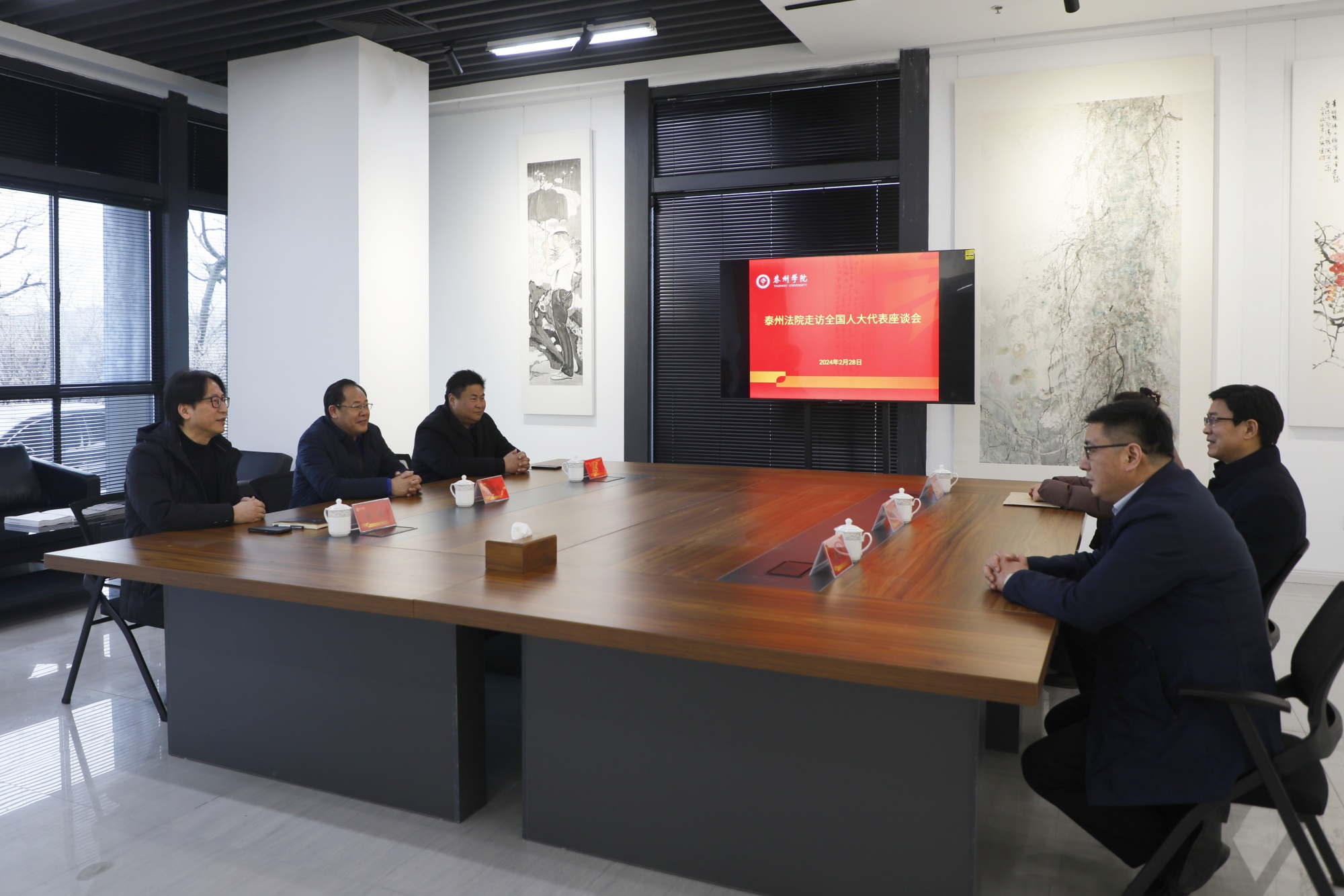 2月28日下午,泰州市中级人民法院院长杨昌顺一行到bat365走访全国人大代表黄平。校党委书记徐向明接待来宾,双方在bat365全国人大代表工作室举行座谈会。