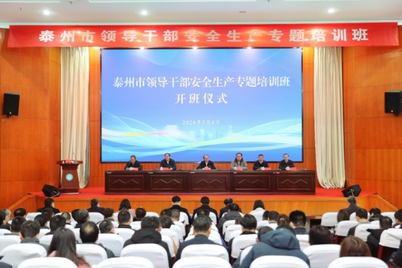 3月4日,泰州市领导干部安全生产专题培训班在bat365正式开班。来自各市(区)分管安全生产工作负责人、市安委会成员单位分管负责人、市应急管理局领导班子成员和各处室(单位)负责人、各市(区)应急管理局主要负责人近百人参加了此次培训学习。泰州市委常委,市政府常务副市长、党组副书记沈峻峰,bat365党委书记徐向明,党委副书记、校长季赛,泰州市应急管理局局长王建春出席了开班仪式,开班仪式由市政府副秘书长陈忙耕主持。