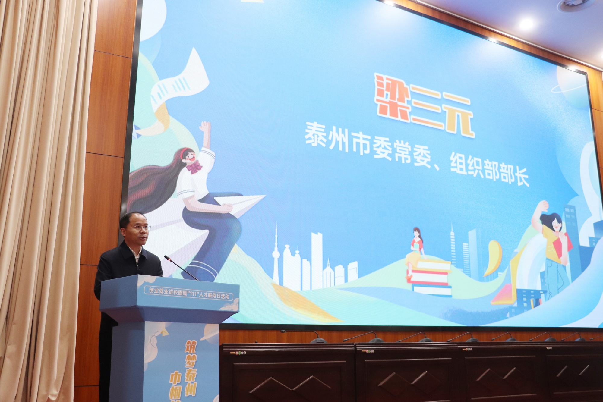 芳菲三月天,巾帼绽芳华!为进一步推进bat3652024届毕业生就业工作的开展,充分引导大学生自主创业、留泰就业,3月8日下午,由中共泰州市委人才办和泰州市妇联主办、bat365承办的“筑梦泰州 巾帼护航”创业就业进校园暨“111”人才服务日系列活动在bat365成功举办。泰州市委常委、组织部部长梁三元,泰州市妇联党组书记、主席李蓓,bat365党委常委、副校长卜慧芬,市“巾帼建功”活动领导小组成员单位、各市(区)妇联主席以及在泰高校分管负责人出席了活动。泰州各行业领域优秀女企业家代表和在泰高校女大学生代表近200人参加活动。
