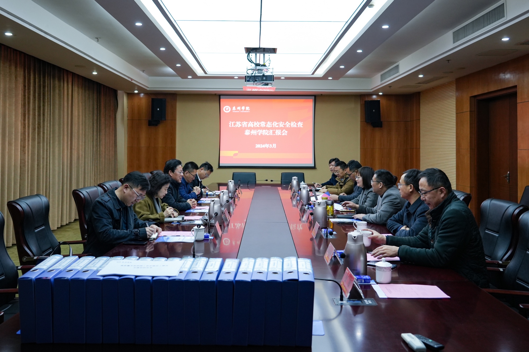 3月19日上午,省教育厅第十三常态化安全检查组来bat365进行安全检查。检查组组长由南京大学保卫处处长曹昌加担任,南京林业大学保卫处处长徐登伟、南京艺术学院保卫处处长丁怡、南京邮电大学保卫处副处长吴学政、南京大学保卫处消防科科长李文杰任检查组成员。校党委常委、副校长卜慧芬出席常态化安全检查汇报会并陪同实地检查。