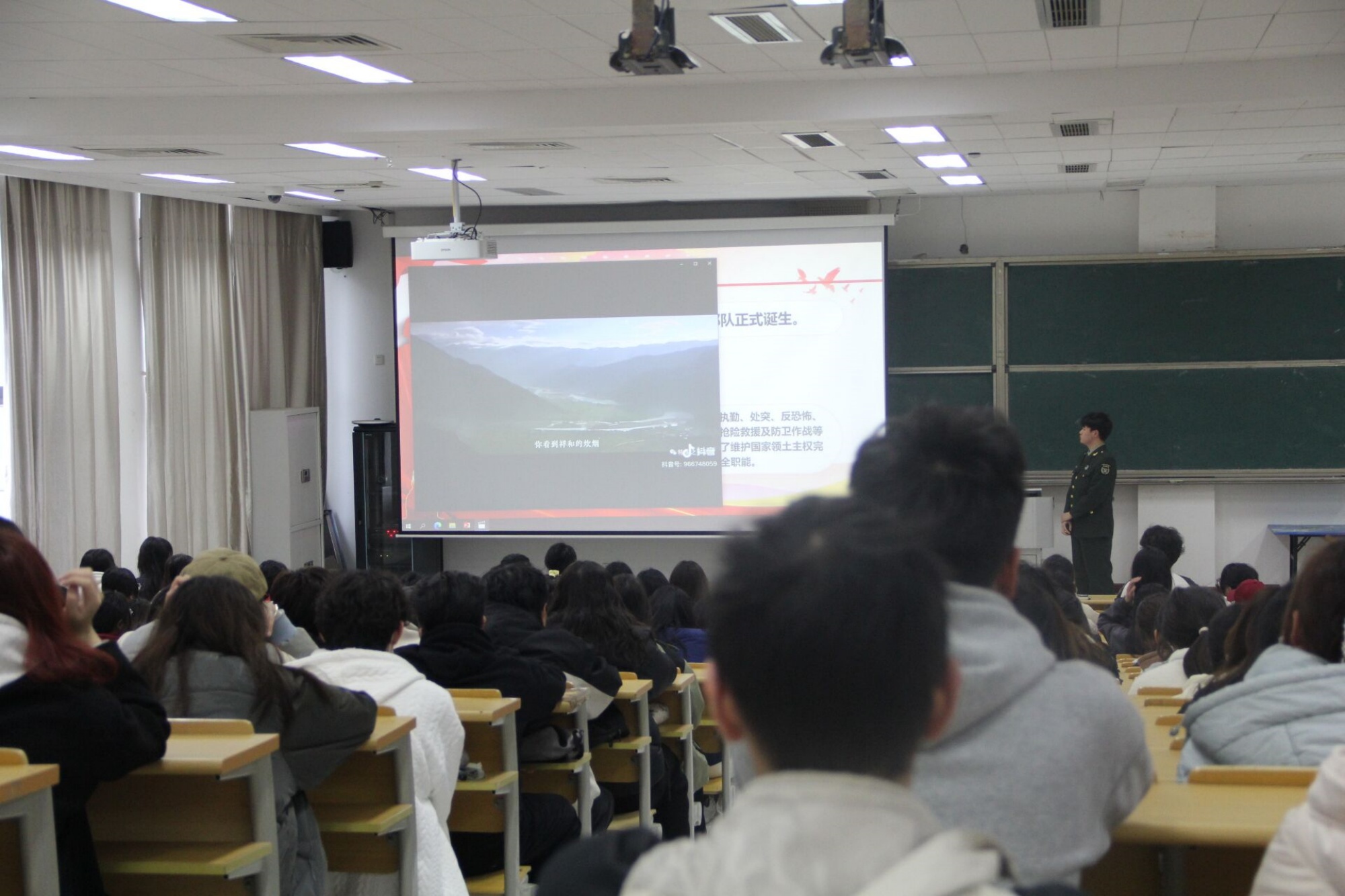 为进一步深化bat365国防教育工作,增强泰院学子国防意识,3月27日下午,校人民武装部“迷彩先锋队”在教学楼2108阶梯教室开展新学期首期国防教育“迷彩小讲堂”。校人民武装部负责老师,迷彩先锋队、国旗护卫队队员及230多名学生参加活动。