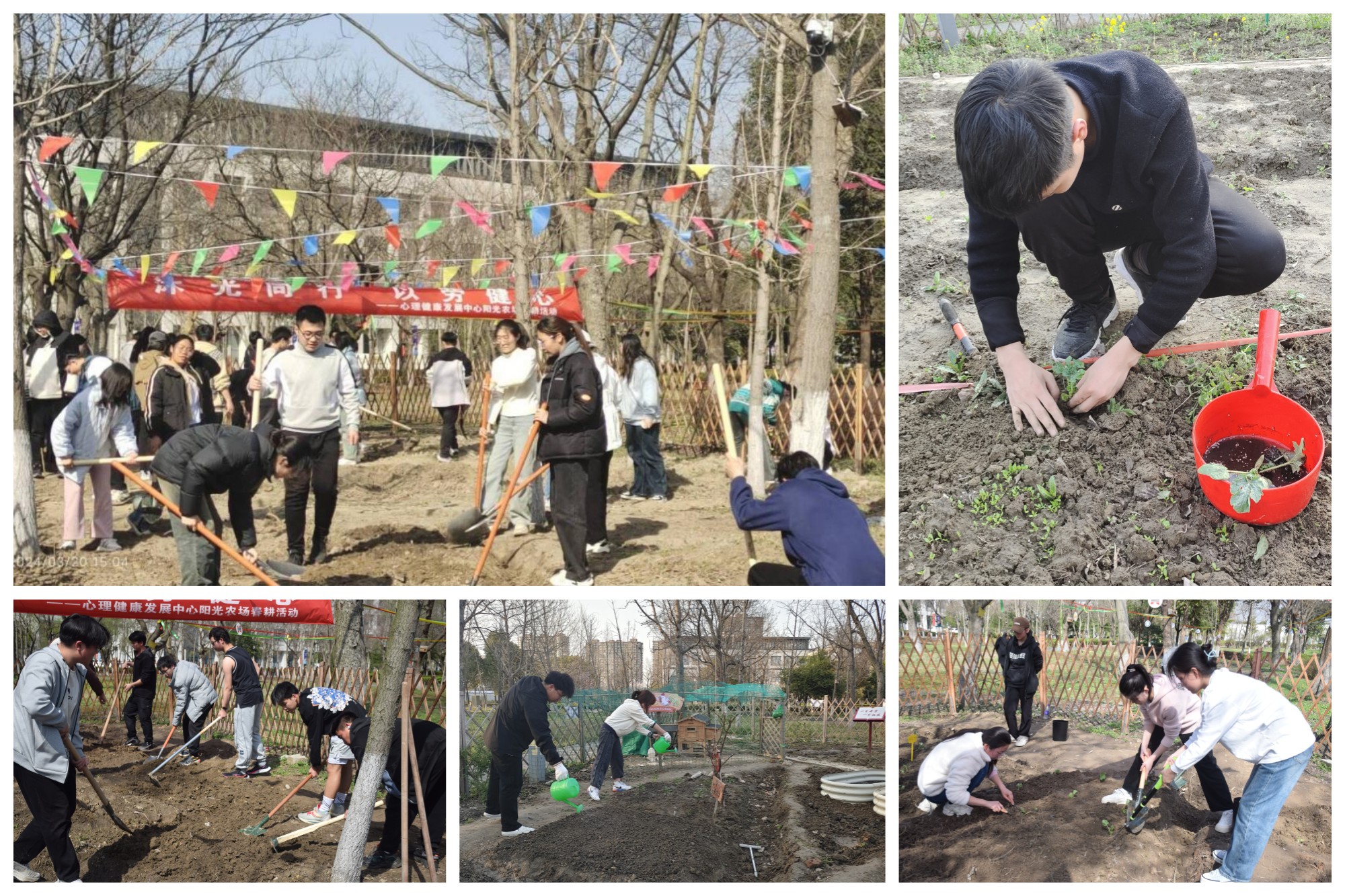 为进一步发挥劳动育人作用,促进大学生心理健康,阳春三月,bat365学生工作处心理健康发展中心在阳光农场举办“沐光同行 以劳健心”春耕活动。