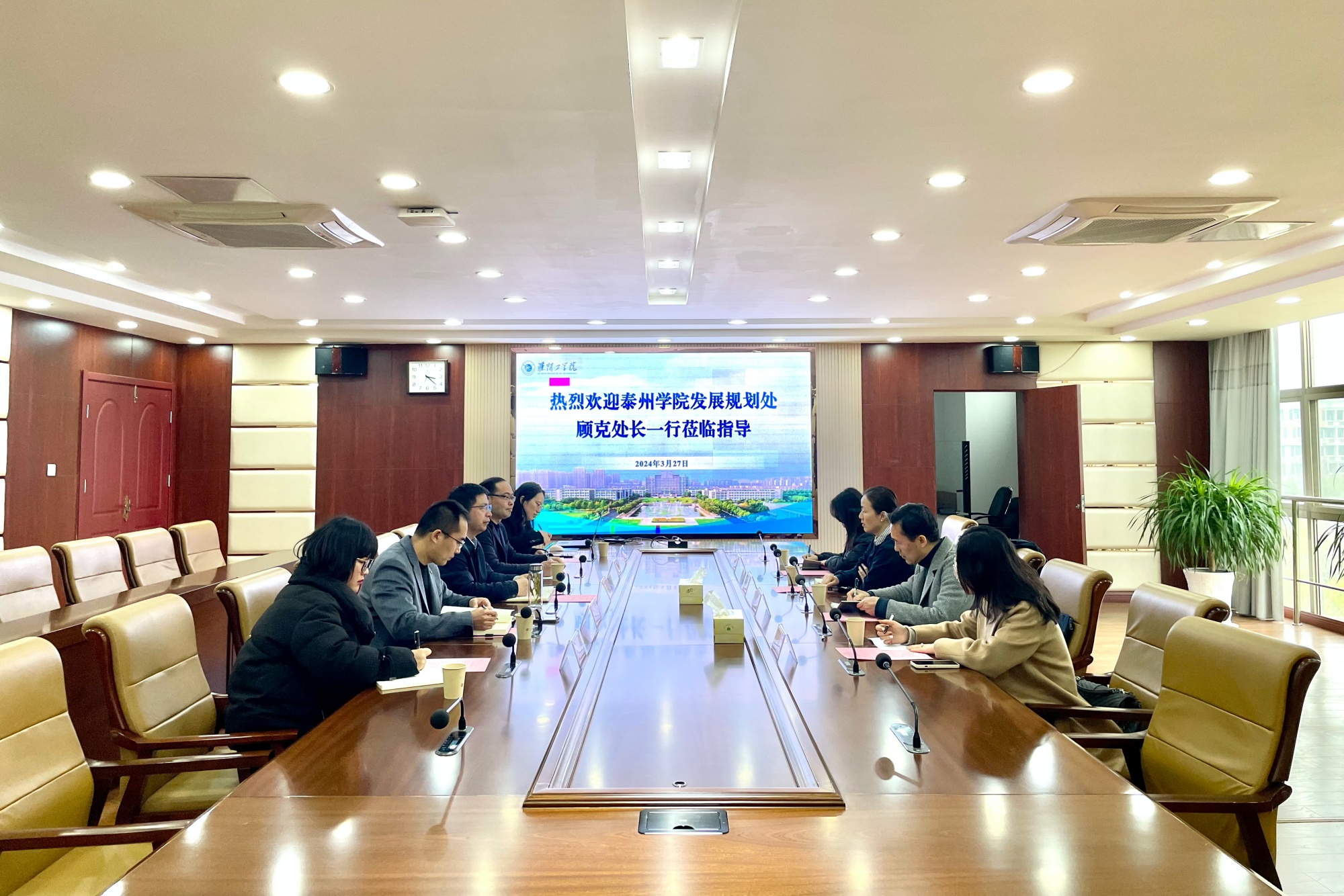 3月27日,淮阴工学院发展规划处处长孙开宝、副处长孙华圣、处长助理武精科及相关工作人员参与座谈。孙开宝介绍了该校“十四五”规划中期评估与修订、学科专业建设、高质量发展综合考核、大学创建等情况;分享了淮阴工学院在高层次人才引进、申硕工作经验以及校友工作情况。双方就如何推进申硕工作及校友会工作开展深入交流。