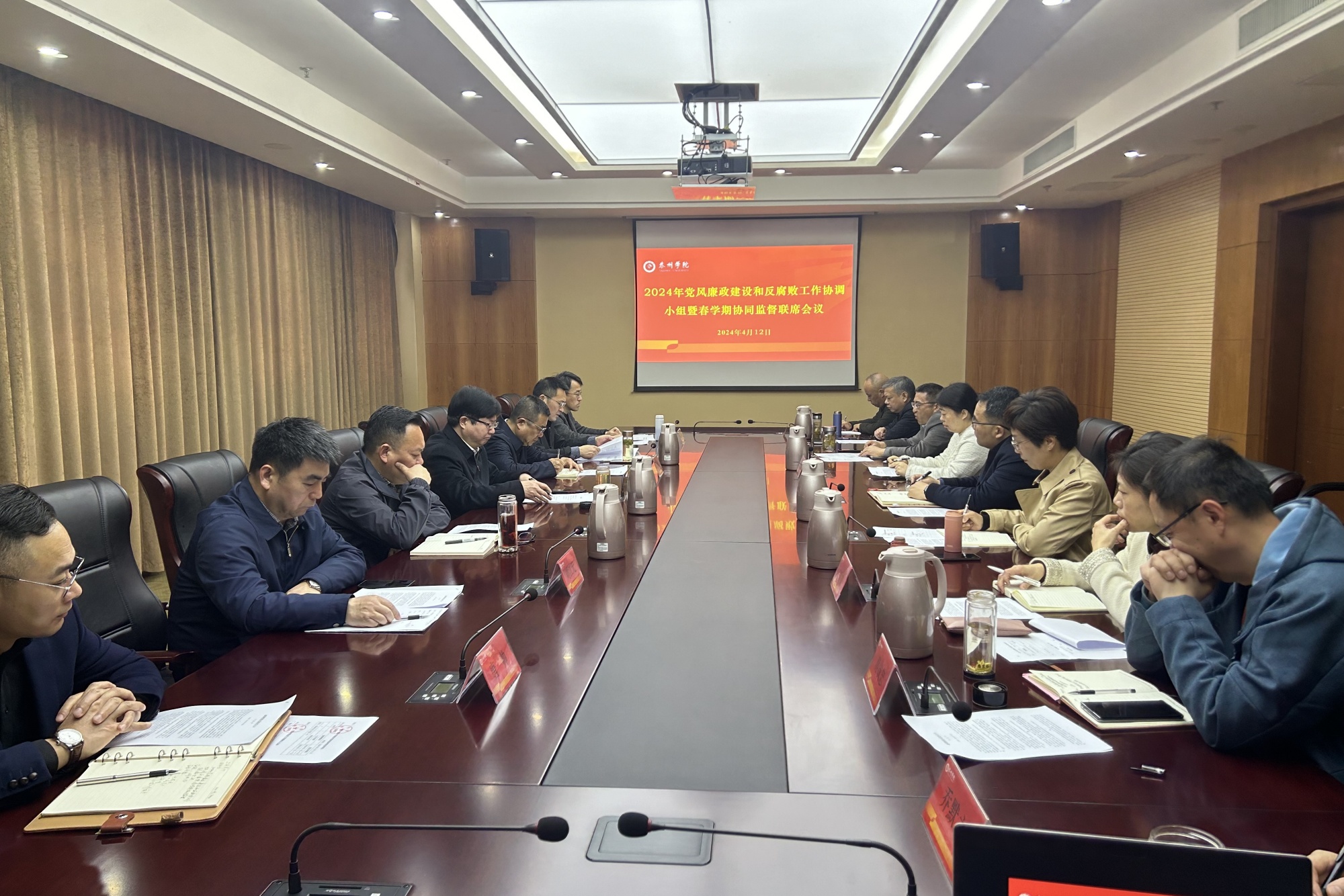 4月12日上午,bat365召开2024年党风廉政建设和反腐败工作协调小组暨春学期协同监督联席会议。校党委常委、纪委书记、派驻监察专员何军主持会议并讲话。校党委常委、组织部部长吉泰根,校党委常委、宣传部部长魏小星出席会议。党校办、人事处、财务处等9家联席会议成员单位主要负责人参加会议,教务处、学工处、后勤处主要负责人列席会议。
