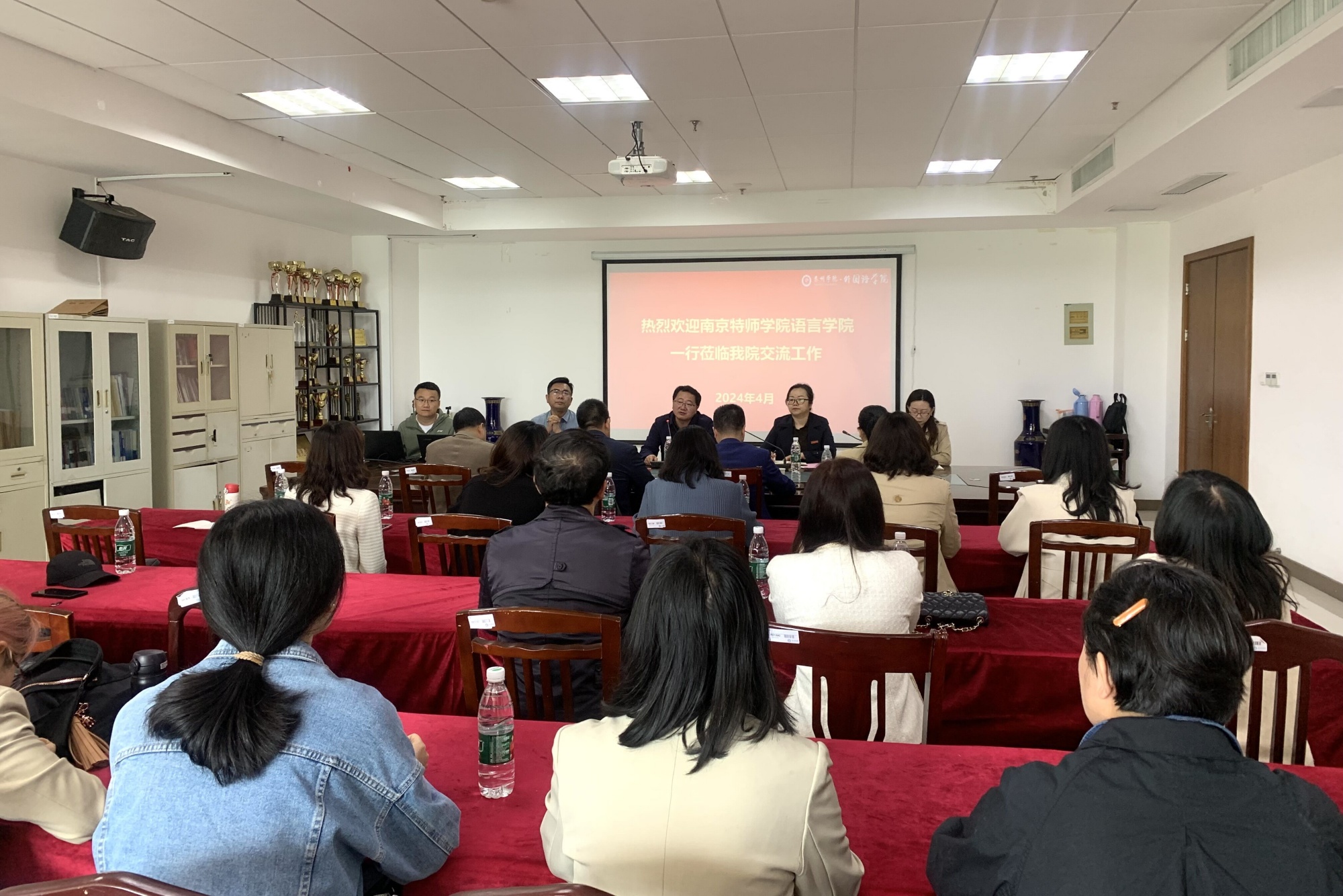 4月20日上午,南京特殊教育师范学院语言学院党总支书记丁祖保、执行院长王东一行21人来bat365外国语学院访问交流。外国语学院院长李更春、党总支副书记马永明、副院长周侠等参加此次交流。