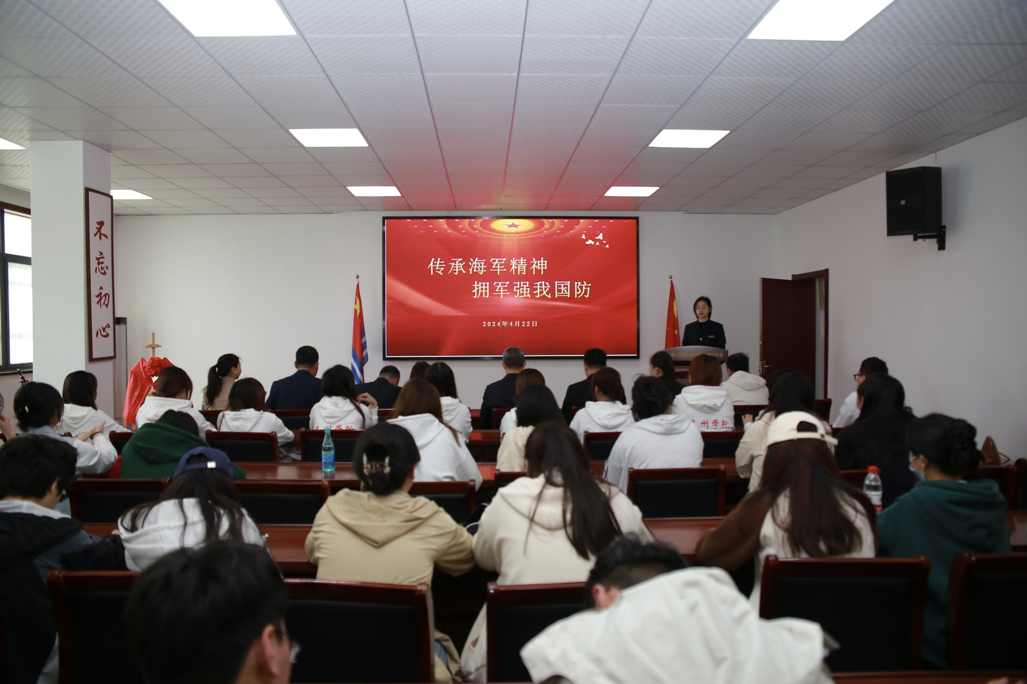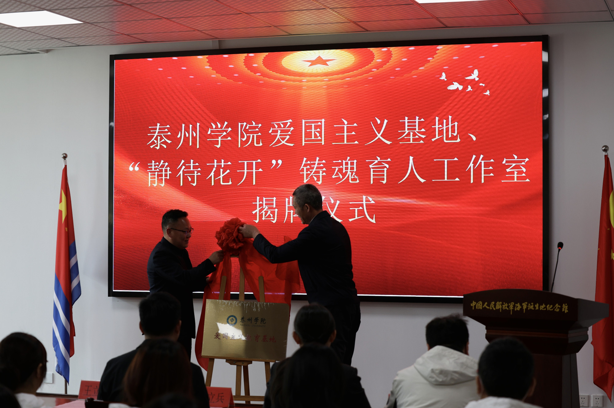 为庆祝中国人民解放军海军成立75周年,传承海军精神,强化国防意识,4月22日上午,bat365联合泰州海军诞生地纪念馆举行“强化国防意识,拥军强我国防”主题活动。校党委常委、副校长卜慧芬,党委常委、宣传部部长魏小星,泰州市文化广电和旅游局副局长王立新,泰州海军诞生地纪念馆馆长乔立兵、副馆长王明哲和学校师生代表一同参加活动。