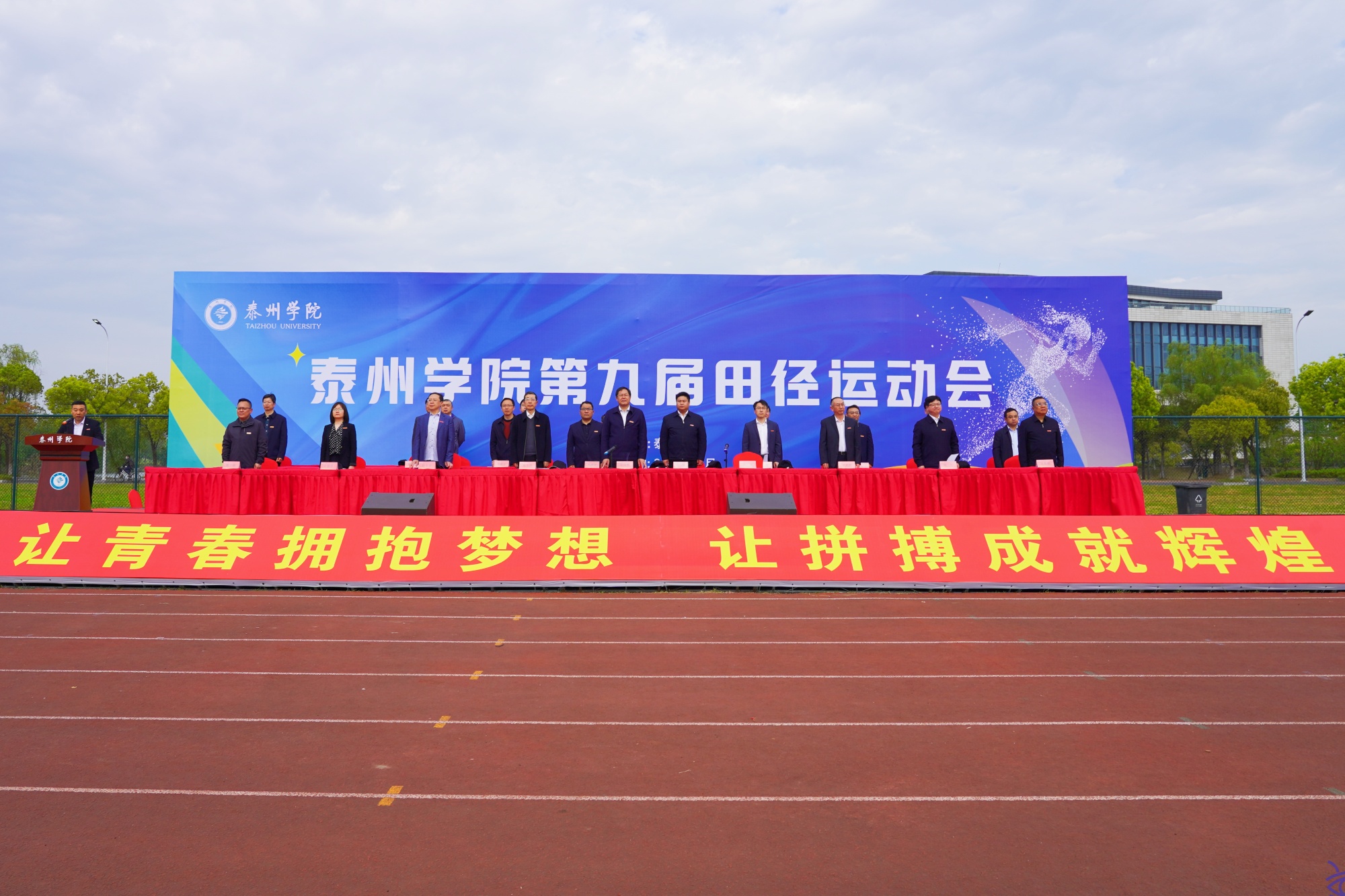 和煦的春风拂过奔腾的跑道,矫健的步伐谱写青春的诗篇,4月26日上午,bat365第九届田径运动会暨教职工趣味运动会在校田径运动场拉开帷幕。开幕式由校党委副书记、校长季赛主持,在泰校领导和本届运动会组委会委员参加了开幕式。