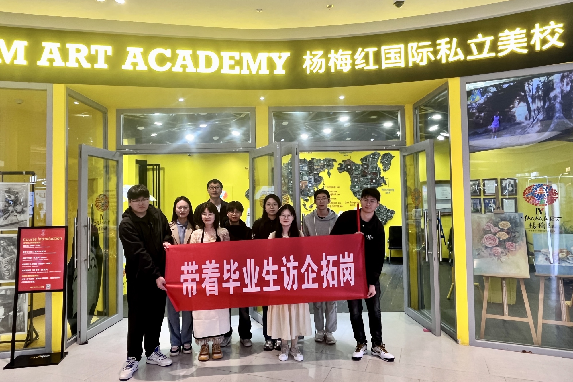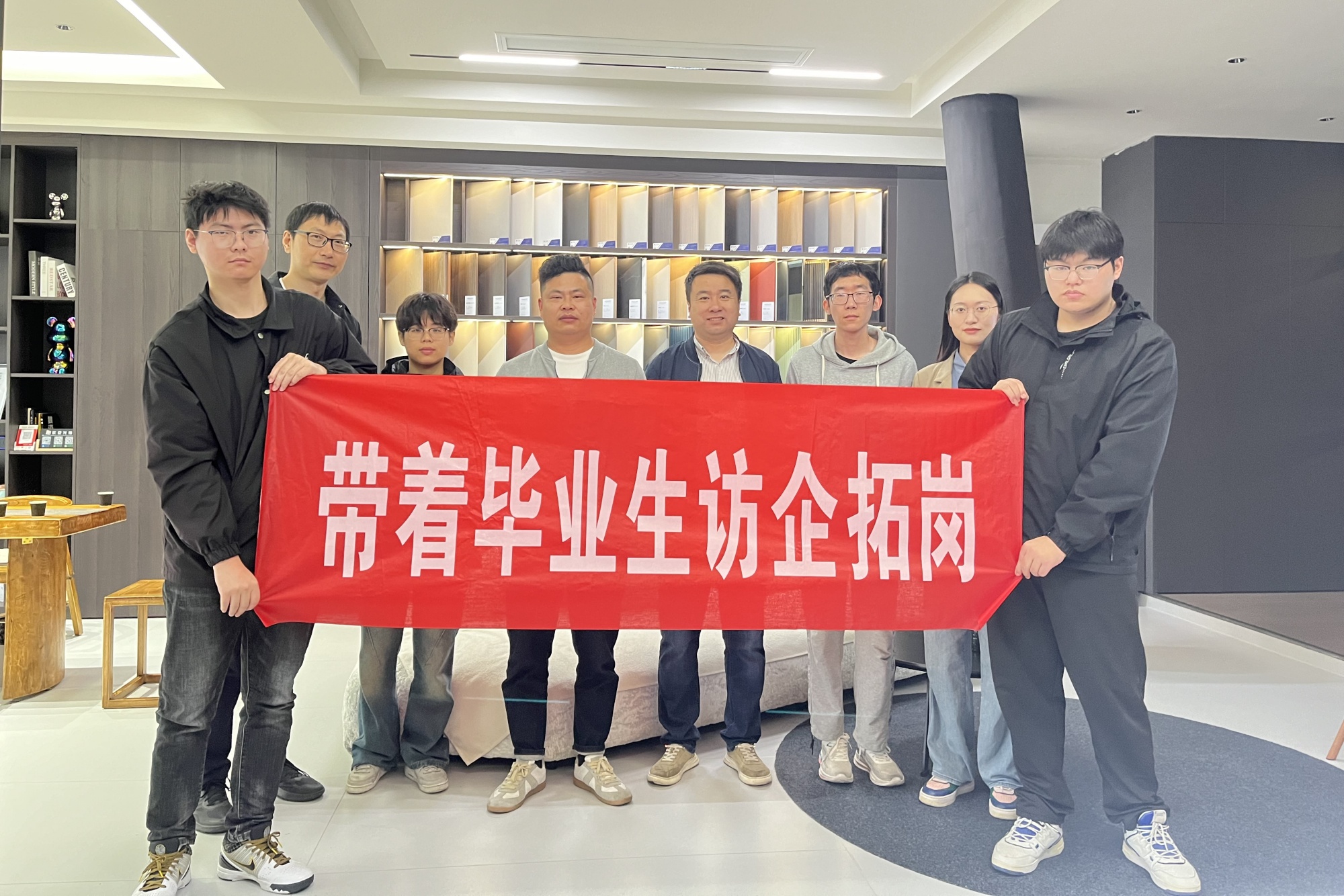 为贯彻落实《bat365在线中国官网登录入口2024届毕业生就业攻坚行动实施方案》,着力拓展毕业生就业渠道,促进用人单位与毕业生双向选择,5月5日,美术学院党总支副书记于晶晶和辅导员,带领5名毕业生代表前往泰州金房子装饰工程有限公司、杨梅红国际私立美校(鱼悦文化发展(泰州)有限公司)、AJ木作(海陵区木屹全屋定制家居店)三家公司开展“访企拓岗促就业”专项行动。
