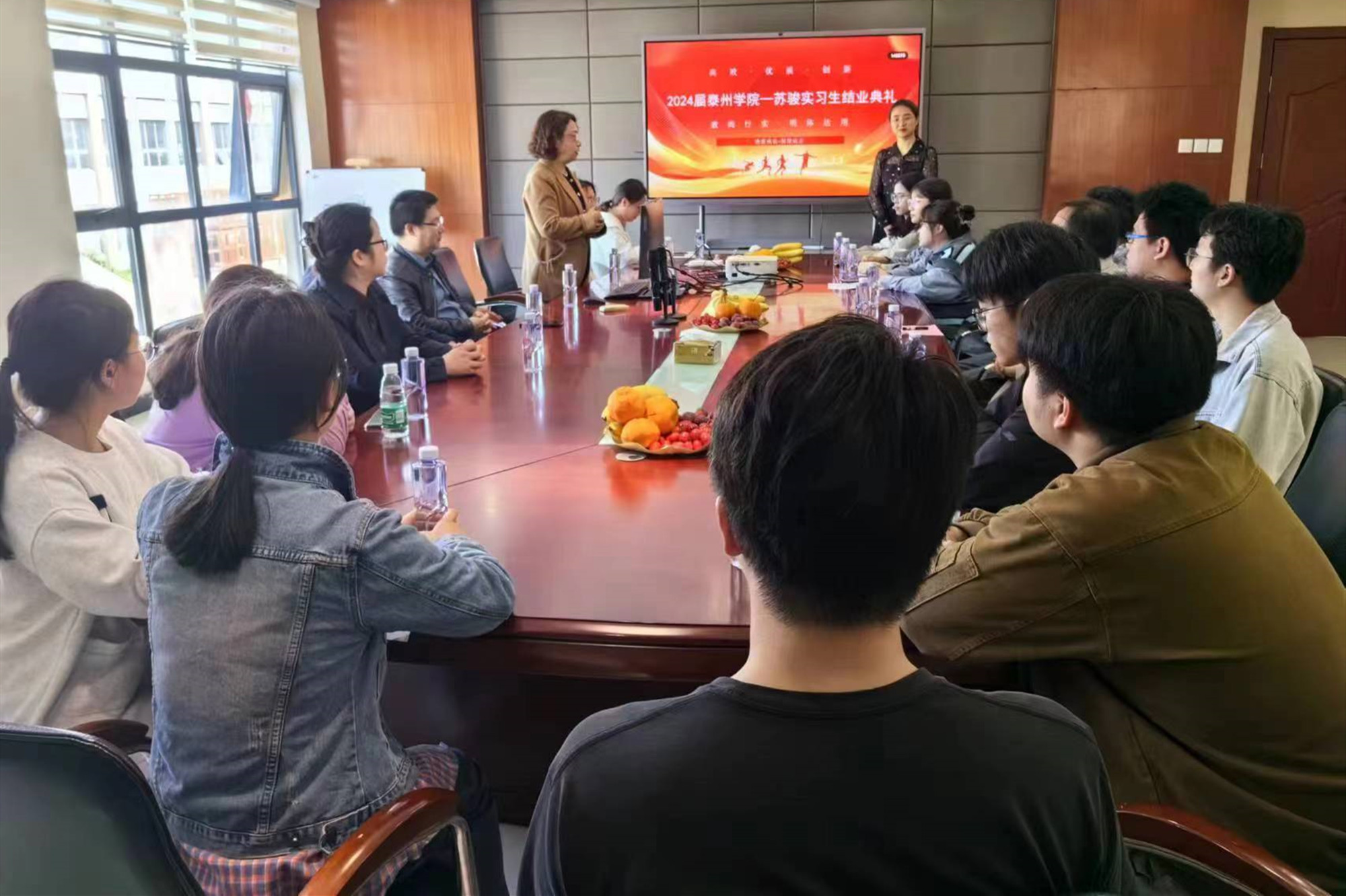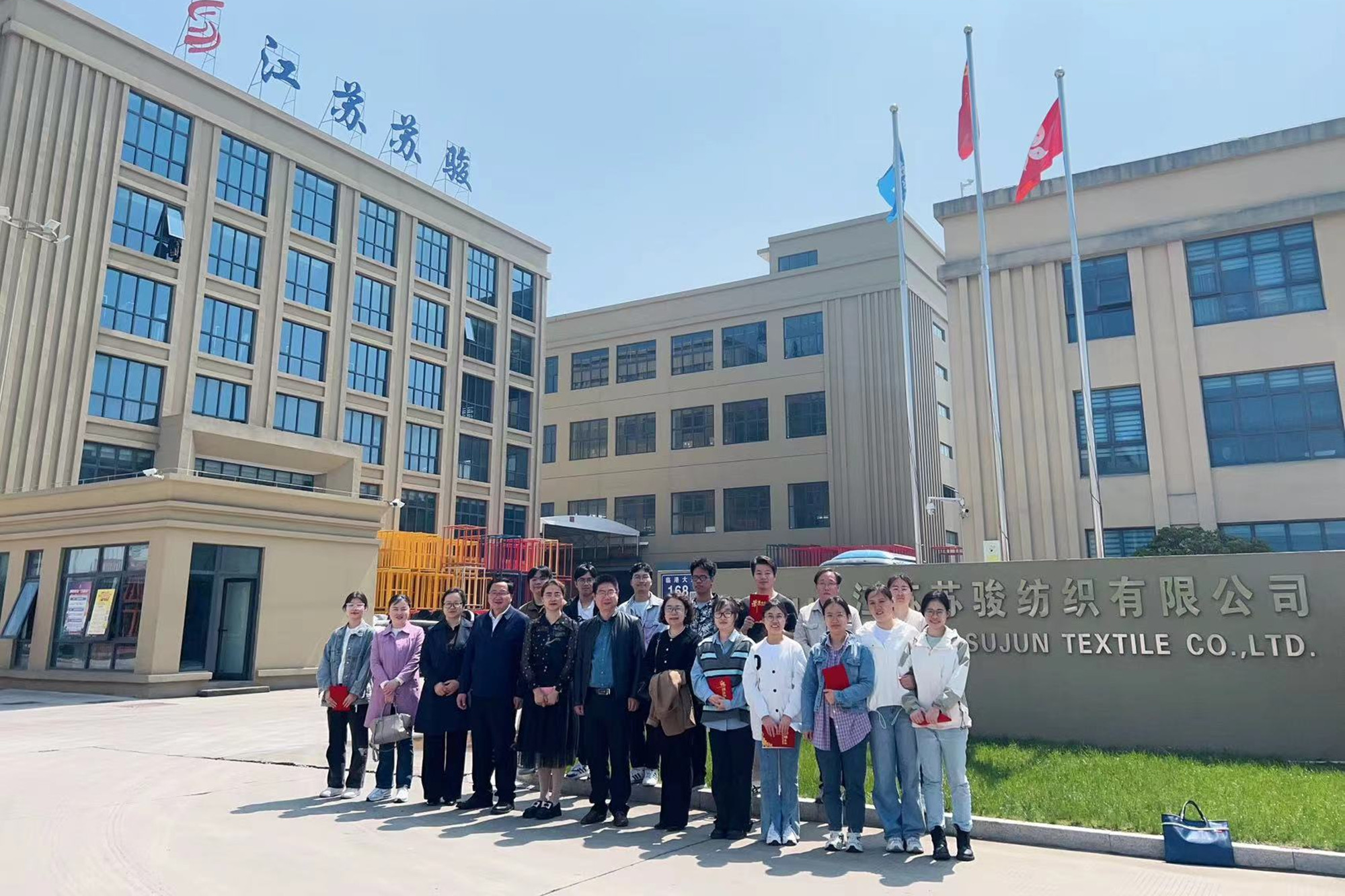 4月29日,外国语学院院长李更春,党总支副书记、副院长全小军,副院长周侠、丁莉和2020级商务英语专业班主任徐佳一行赴江苏苏骏纺织有限公司参加毕业生实习结业仪式。