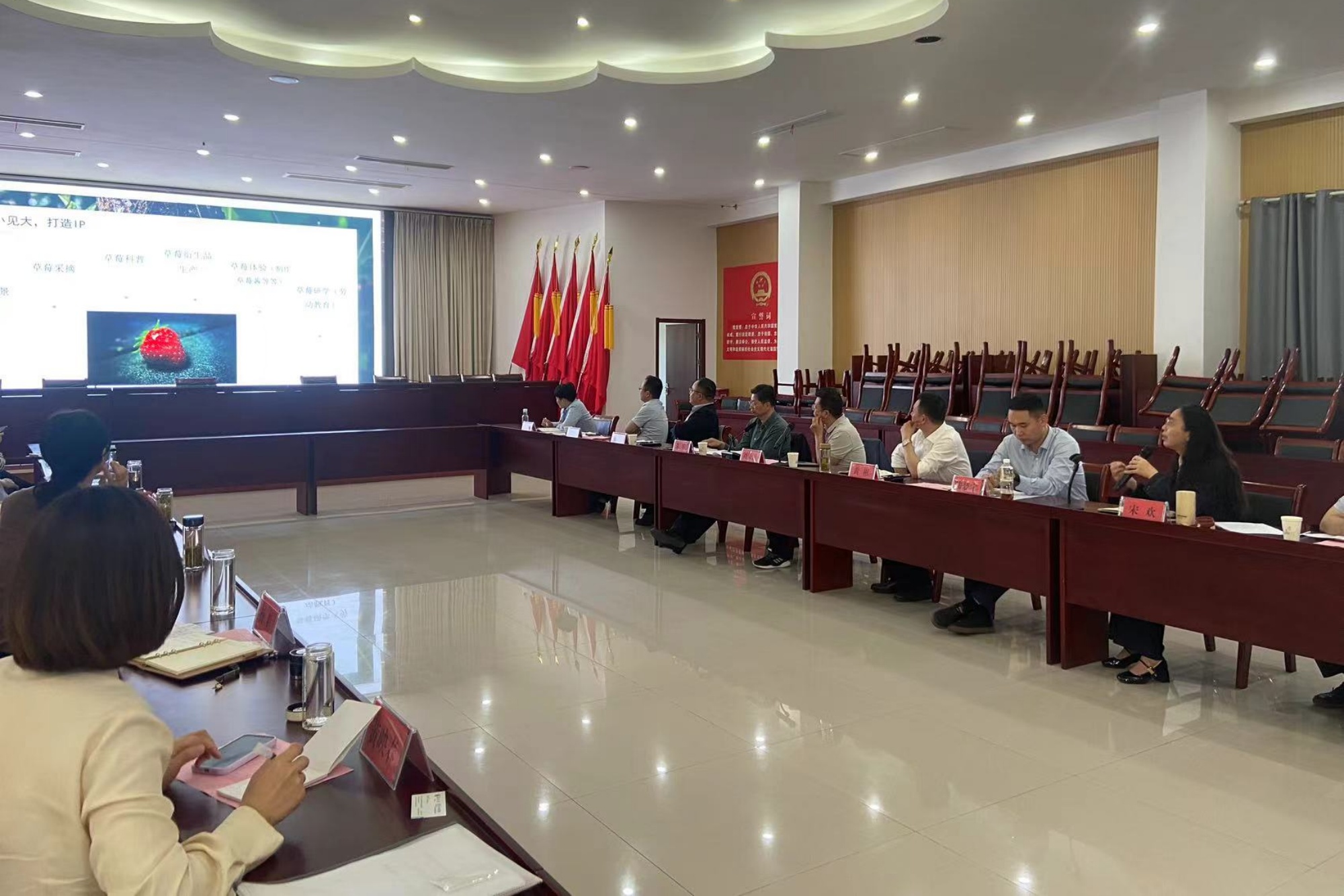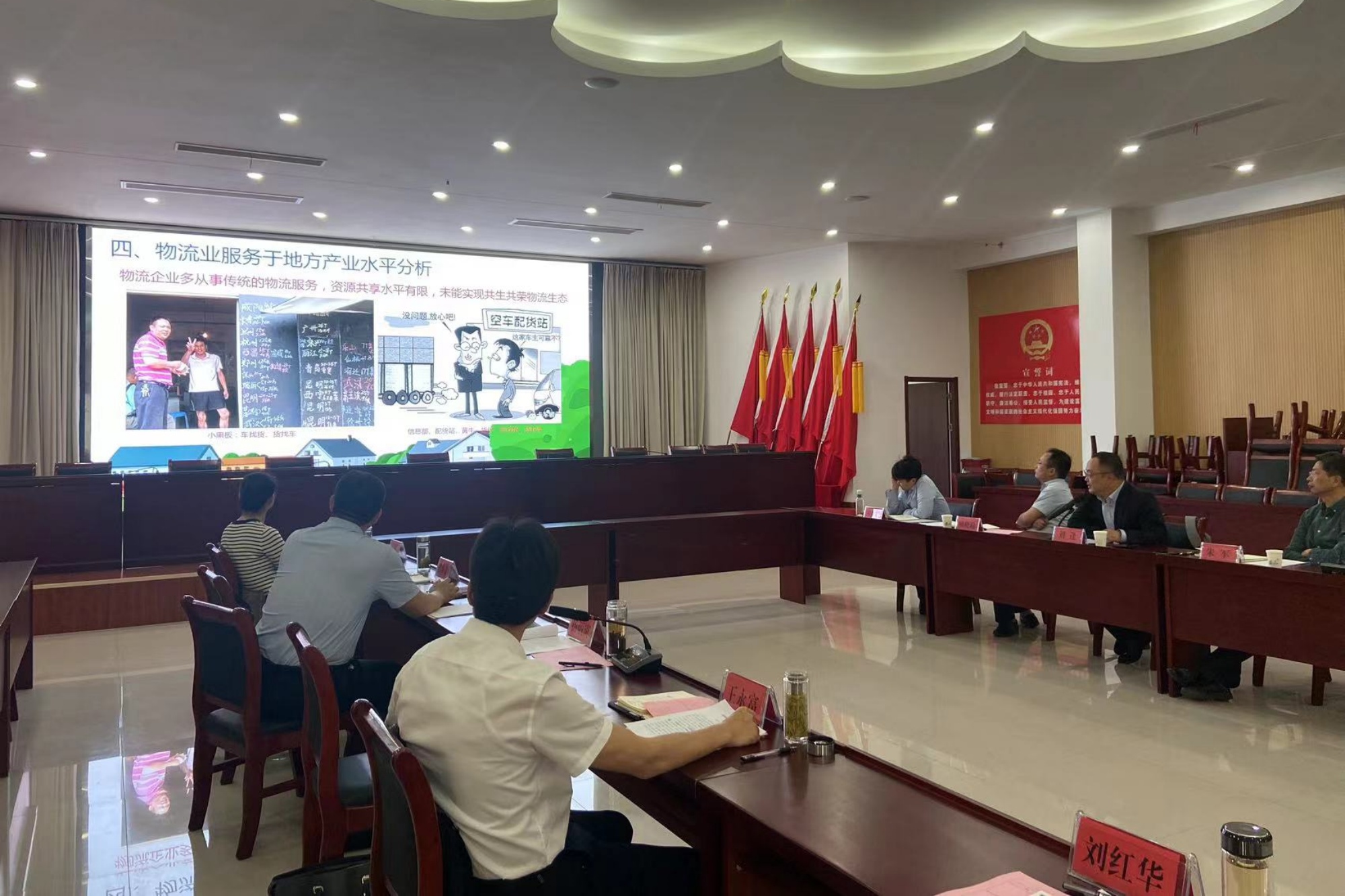 活动依托去年双方基层党组织成立的“共建联盟”,针对地方物流产业发展和农文旅融合发展进行了专题研讨。张桥镇党委副书记叶永江、党委委员、人大主席刘红华分别介绍了地方物流产业发展和农文旅融合的基本情况与规划思路。经济与管理学院数字经济教研室主任刘逢作“以新一代信息技术整合地方物流资源,以数字经济引领产业发展”的专题汇报。旅游管理专业负责人宋欢以“农文旅融合的几点思考”为题作汇报。