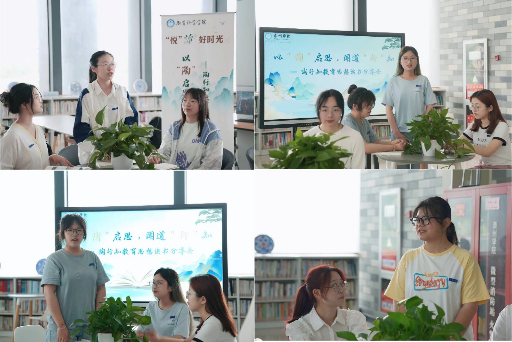 为加强阅读引领、涵育阅读风尚,积极营造爱读书、读好书、善读书的校园氛围,5月21日,教育科学学院于图书馆二楼中庭开展“以‘陶’启思,闻道‘行’知”陶行知教育思想读书分享会,2023级小学教育(定向)班的30余名师生代表参加。