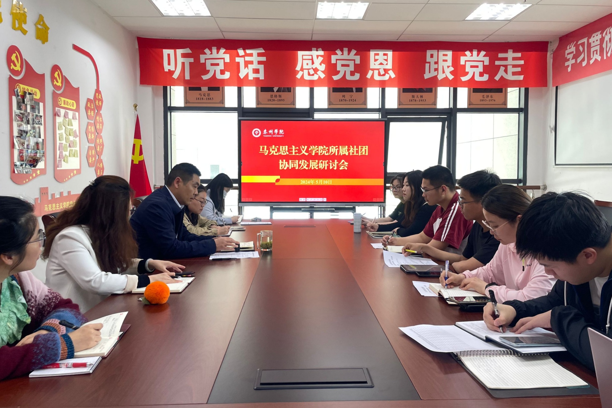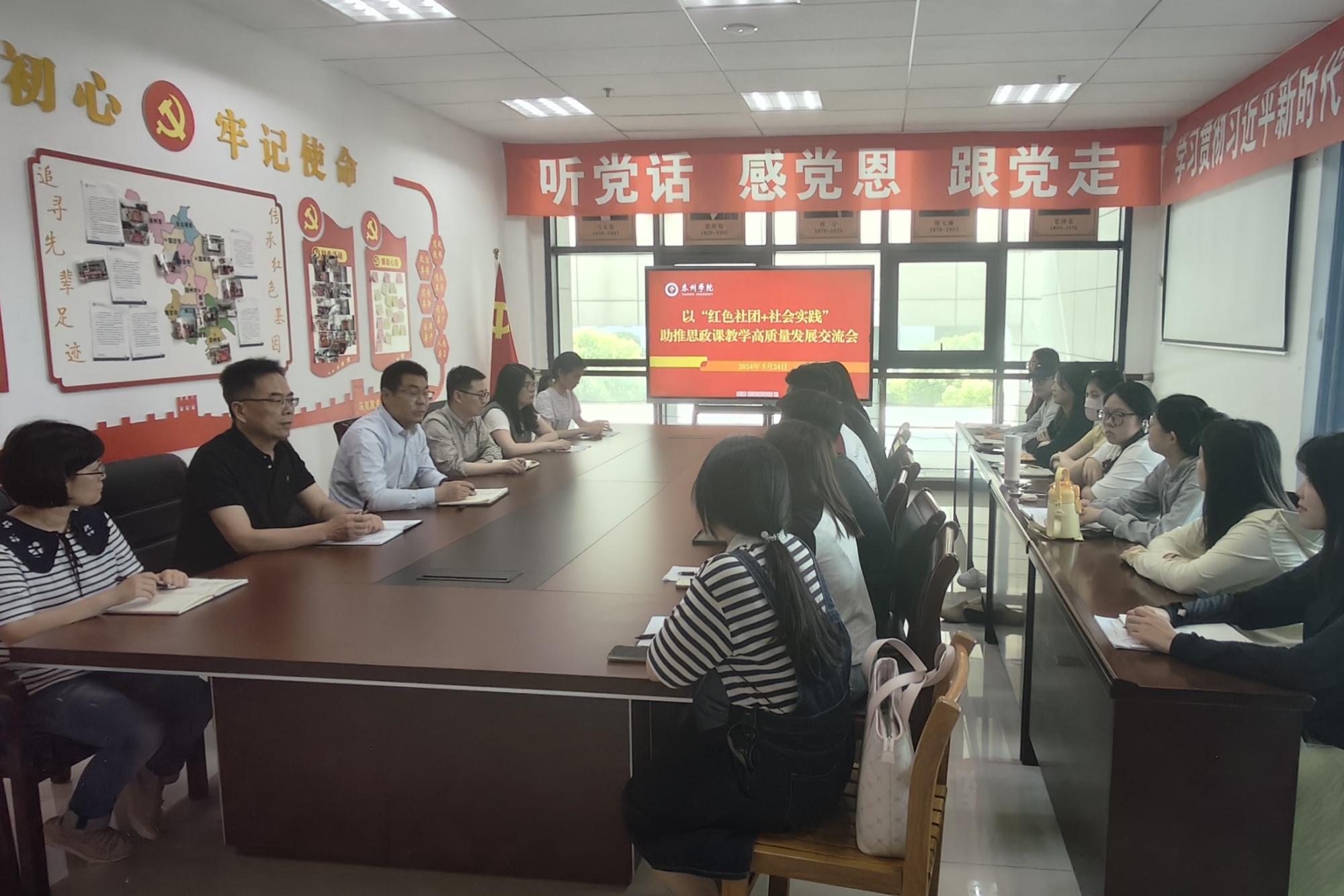 5月24日下午,马克思主义学院在D2301会议室举办了以“红色社团+社会实践”助推思政课教学高质量发展的主题交流会。学院党总支书记陈志峰、院长刁龙、副院长栾茂峰,所属社团负责人及指导老师代表,小学思政课教师代表参加活动。会议共同探索思政课“守正创新”之路,探寻马克思主义学院高质量发展之策。会议由陈志峰主持。